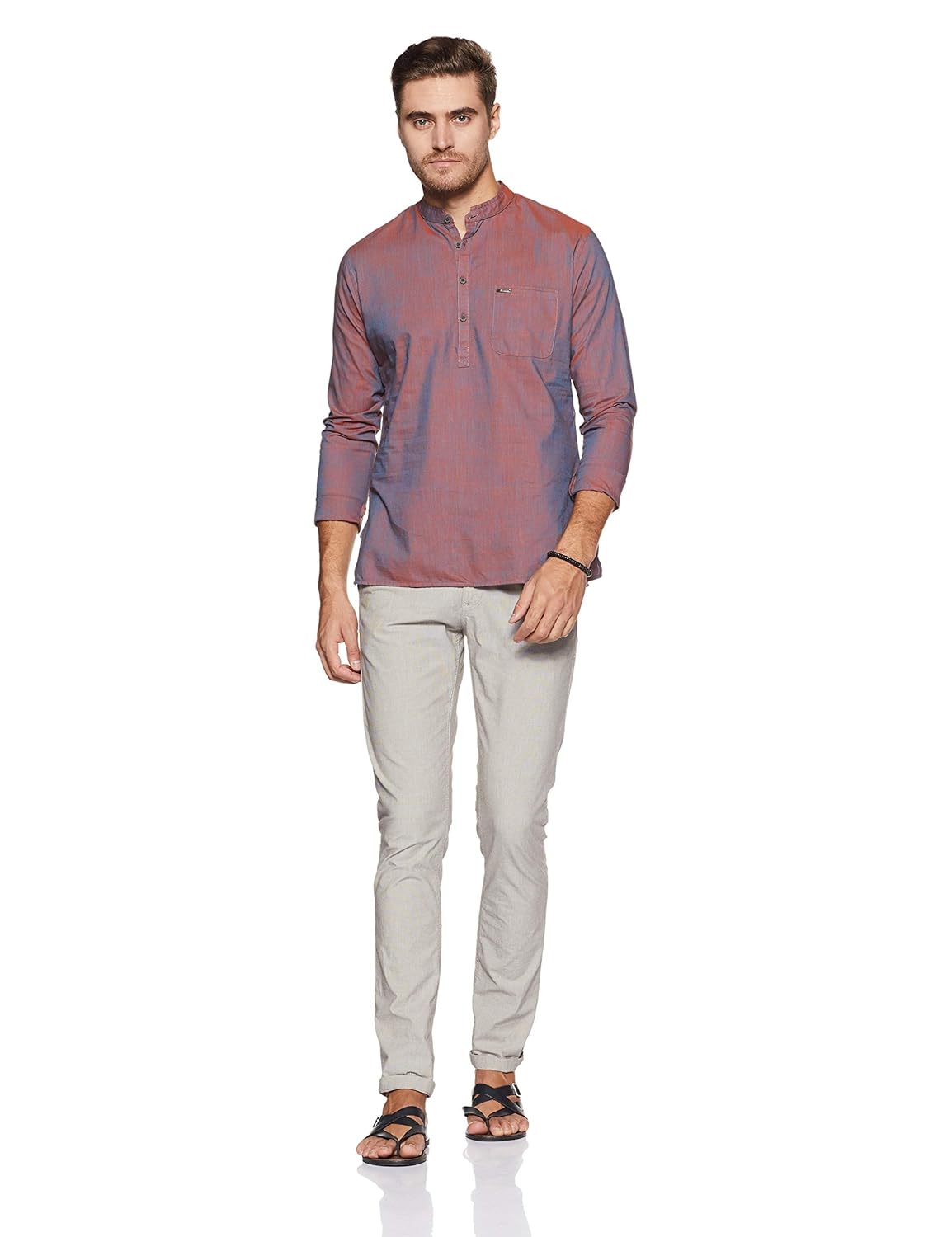 Bring an element of style to your traditional dressing with this Brown solid kurta from Peter England.