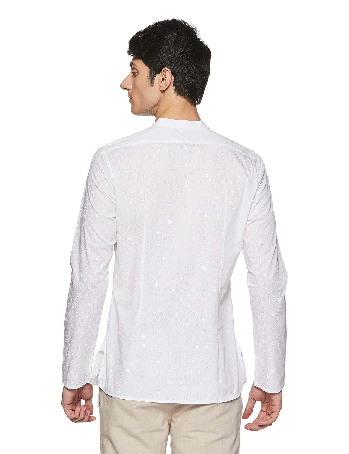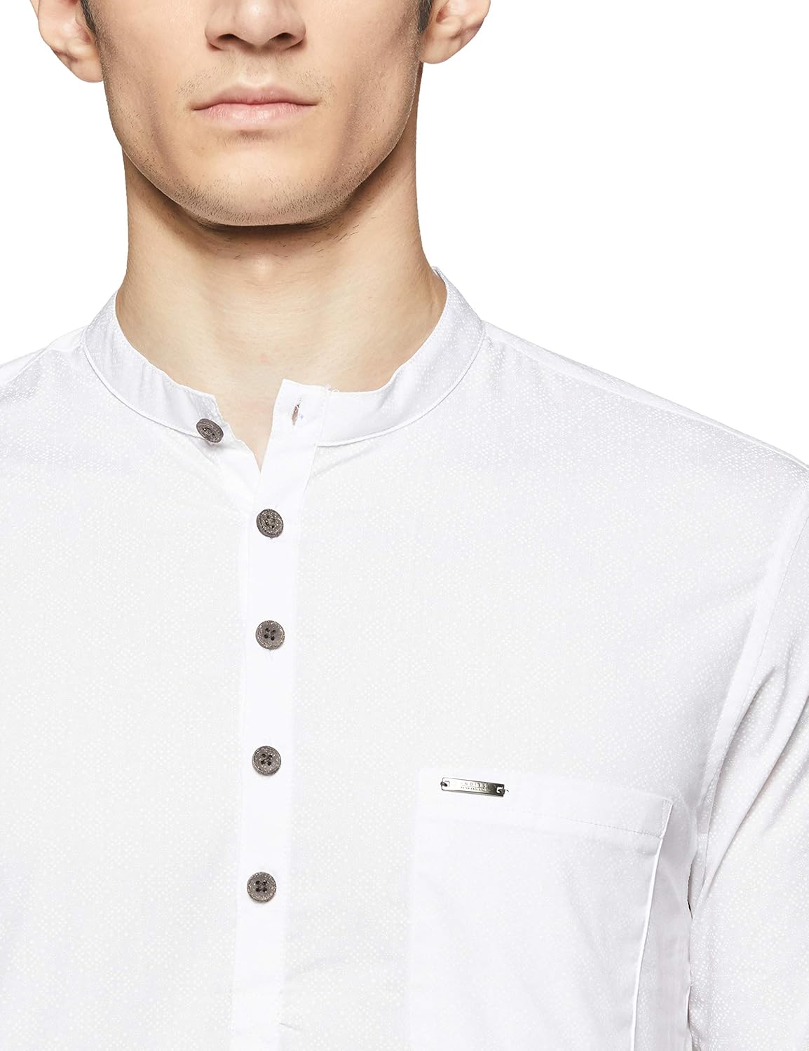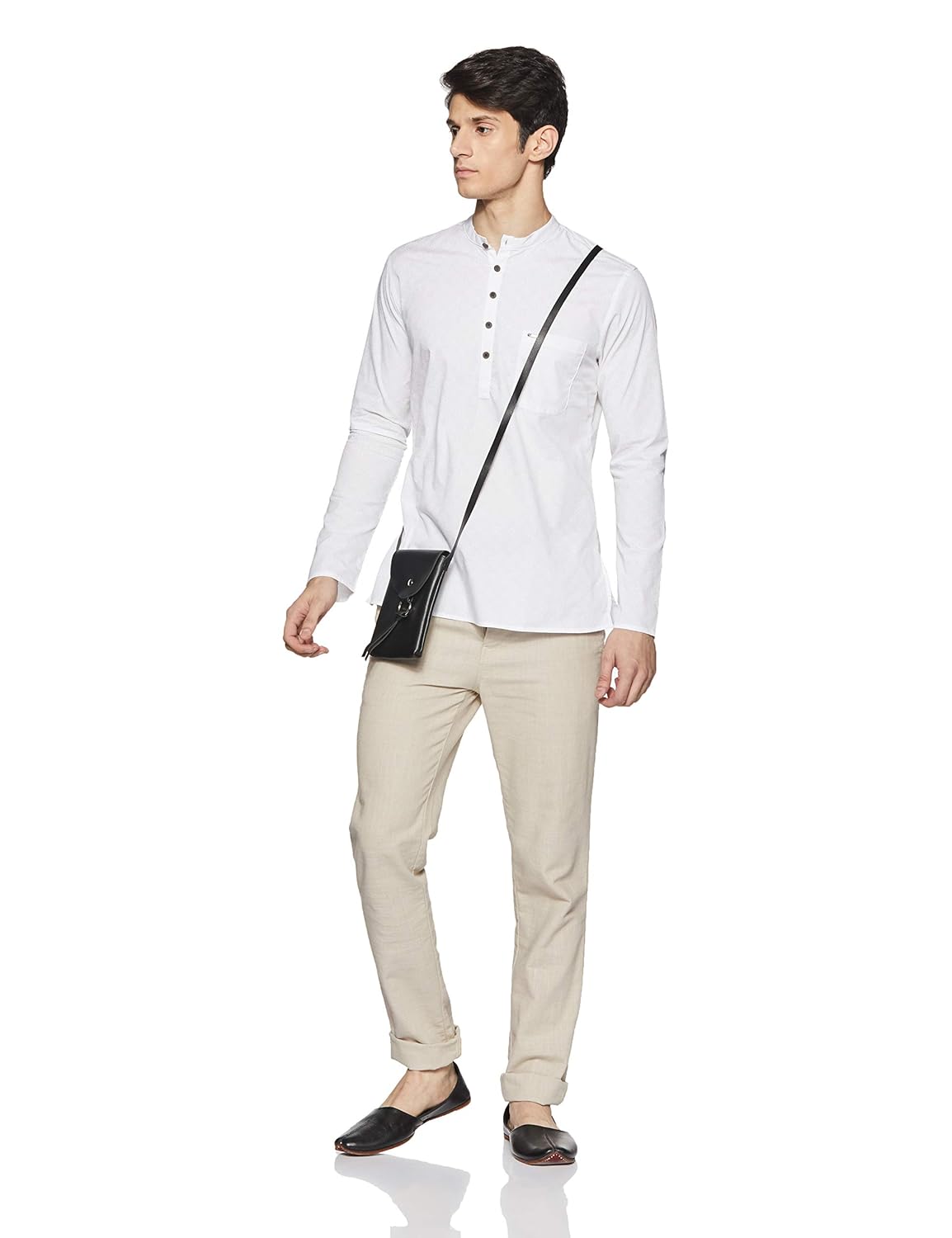 Bring an element of style to your traditional dressing with this White solid kurta from Peter England.
