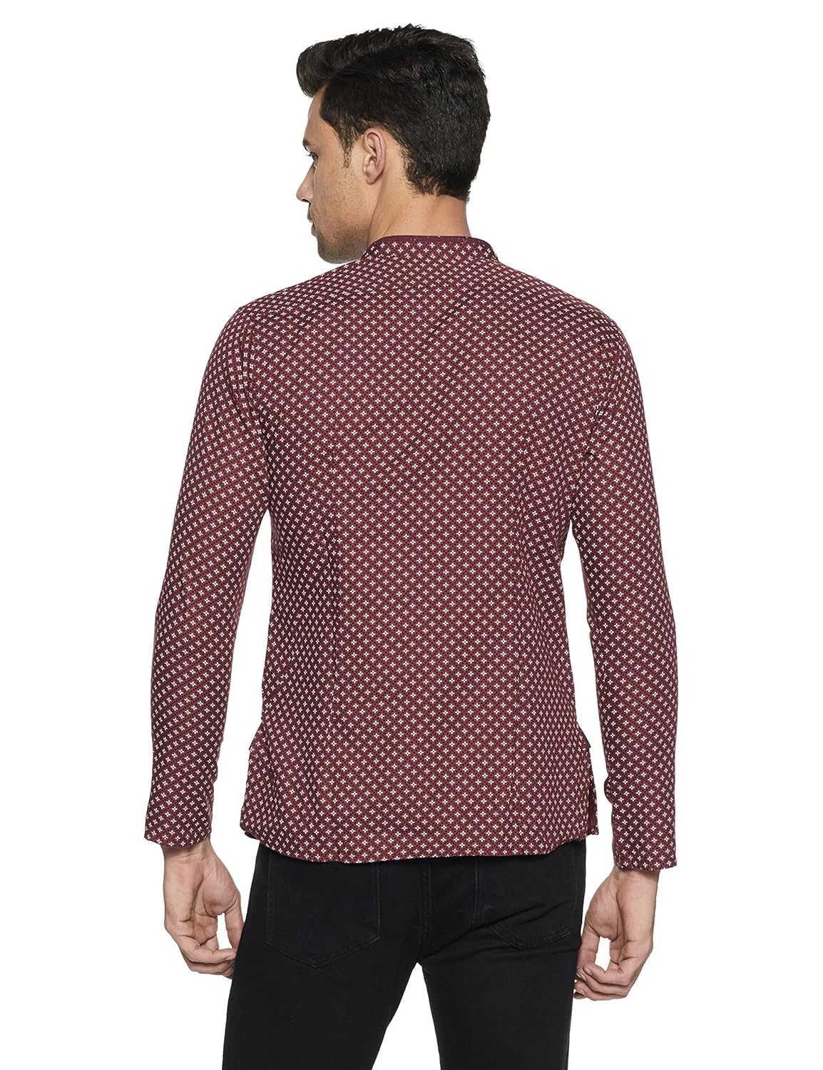 Three quarter sleeve with banded collar