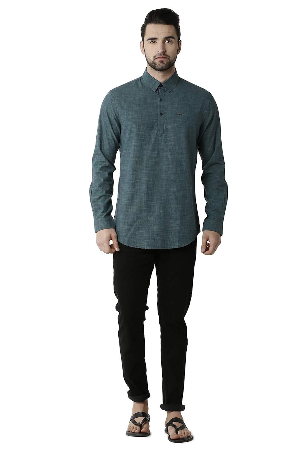 Bring an element of style to your traditional dressing with this Green textured kurta from Peter England.