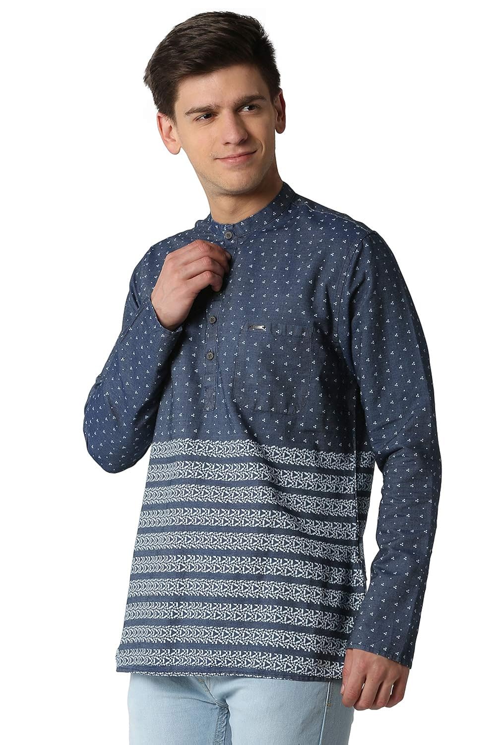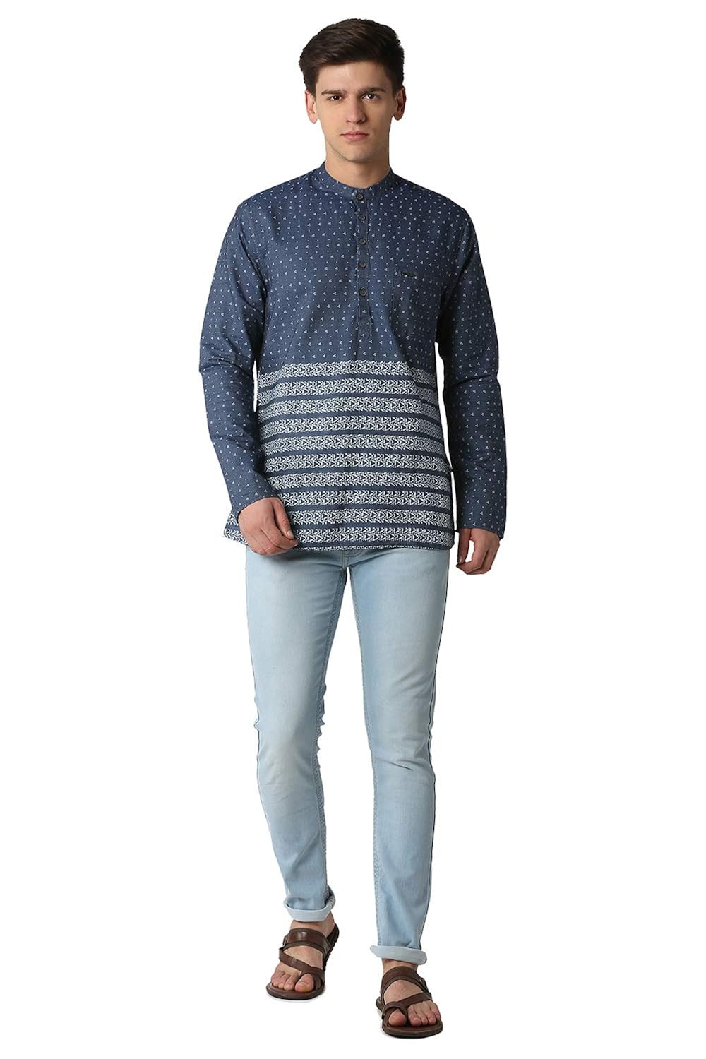 Bring an element of style to your traditional dressing with this Blue print kurta from Peter England.