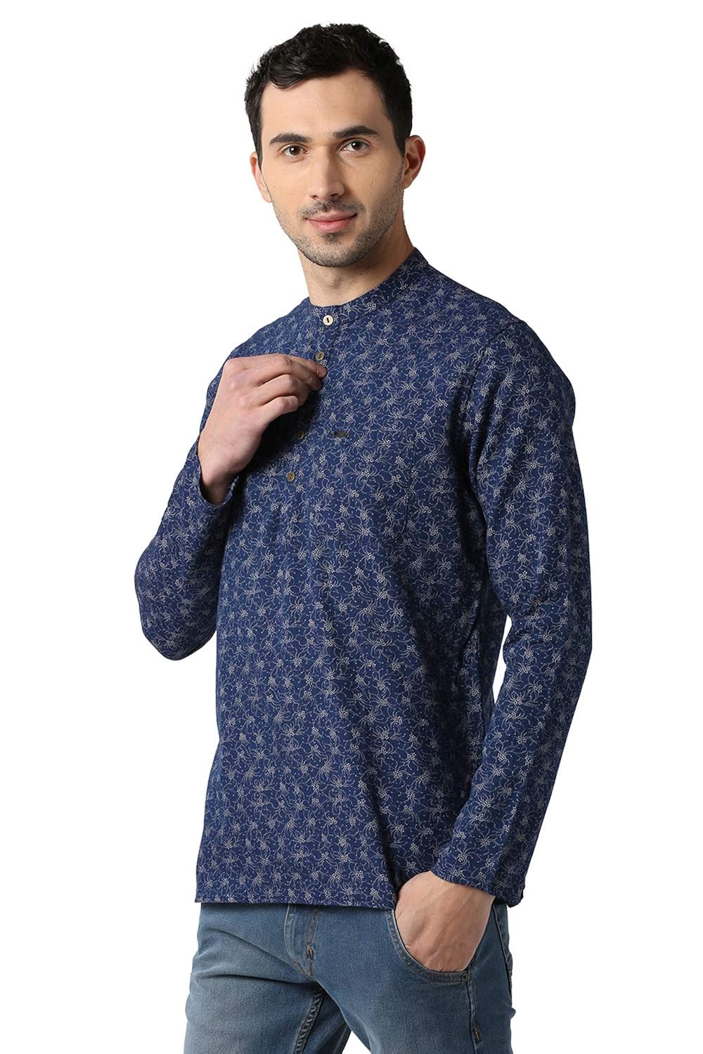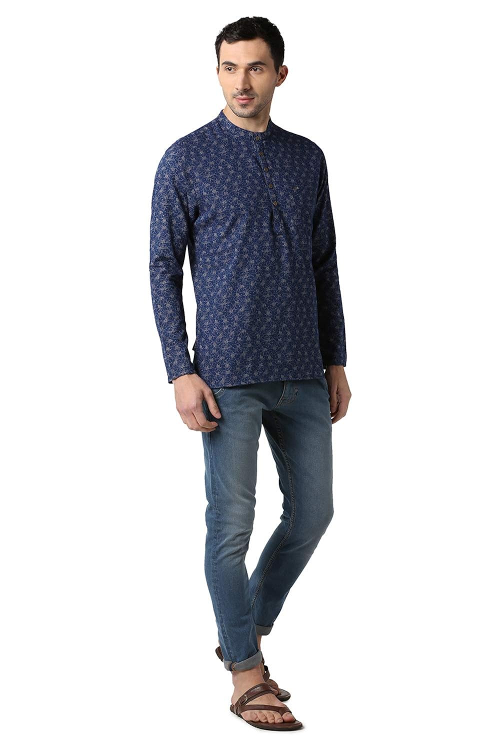 Bring an element of style to your traditional dressing with this Navy print kurta from Peter England.