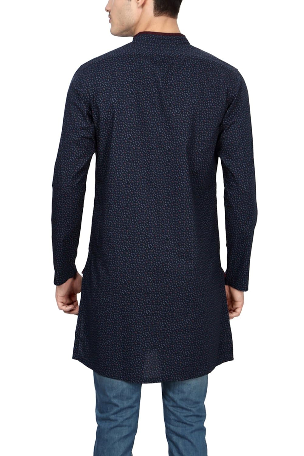 Style up your traditional look with this stylish navy printed kurta from gland. Fashioned from cotton, this band-collar style kurta features a contrast coloured edging at the collar and the placket and is cut in a regular fit. Wear it casually with jeans and loafers to look great. |
