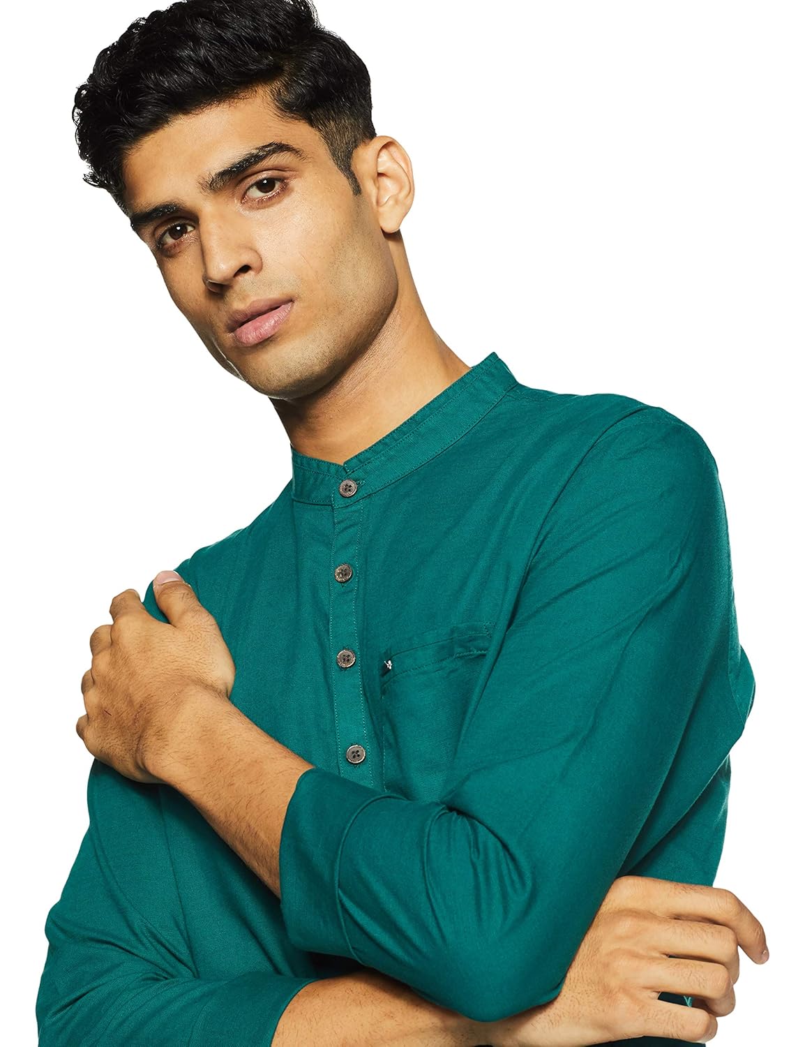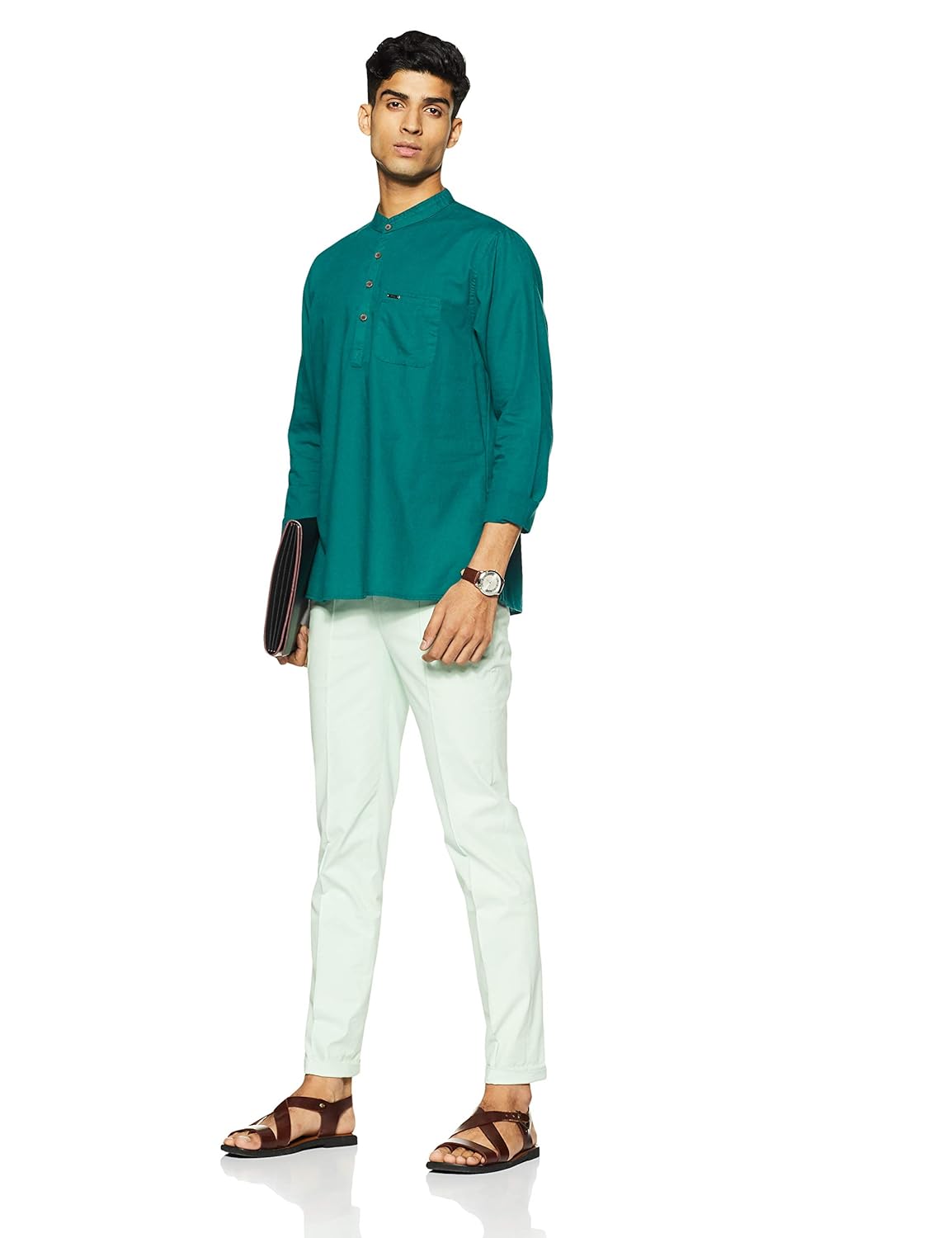 Add a stylish twist to your ethnic wardrobe with this solid kurta from Peter England. Featuring a banded collar this kurta is made from pure cotton giving you utmost comfort. And stylish look. |