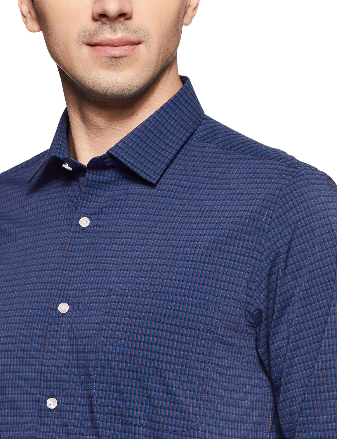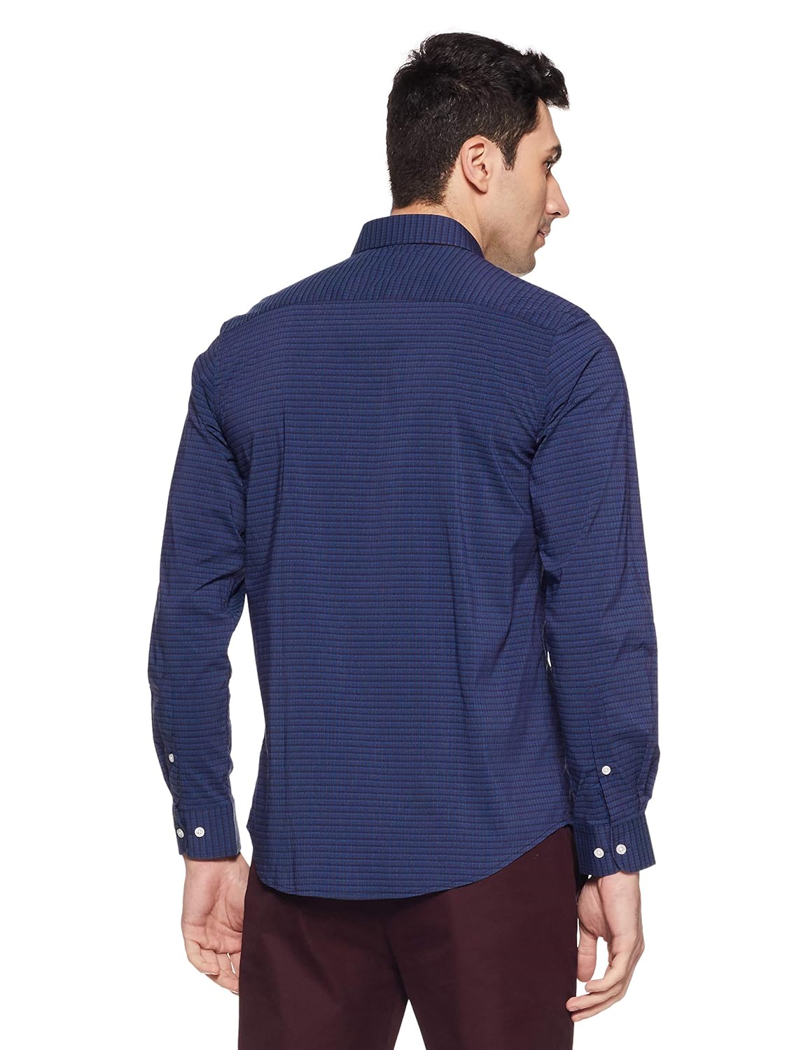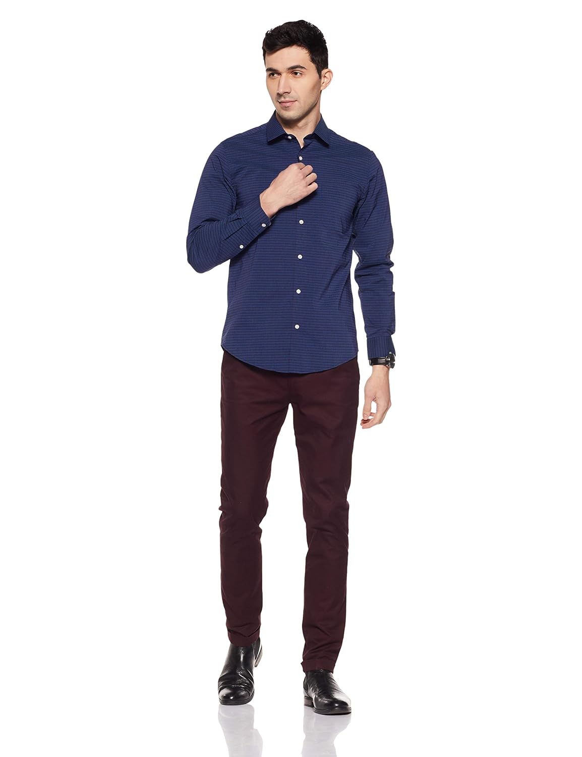 This smart slim fit shirt by Peter England, is perfect for work and all formal occasions. This pure cotton shirt features a chest pocket, full sleeves and a crisp cut-away collar.