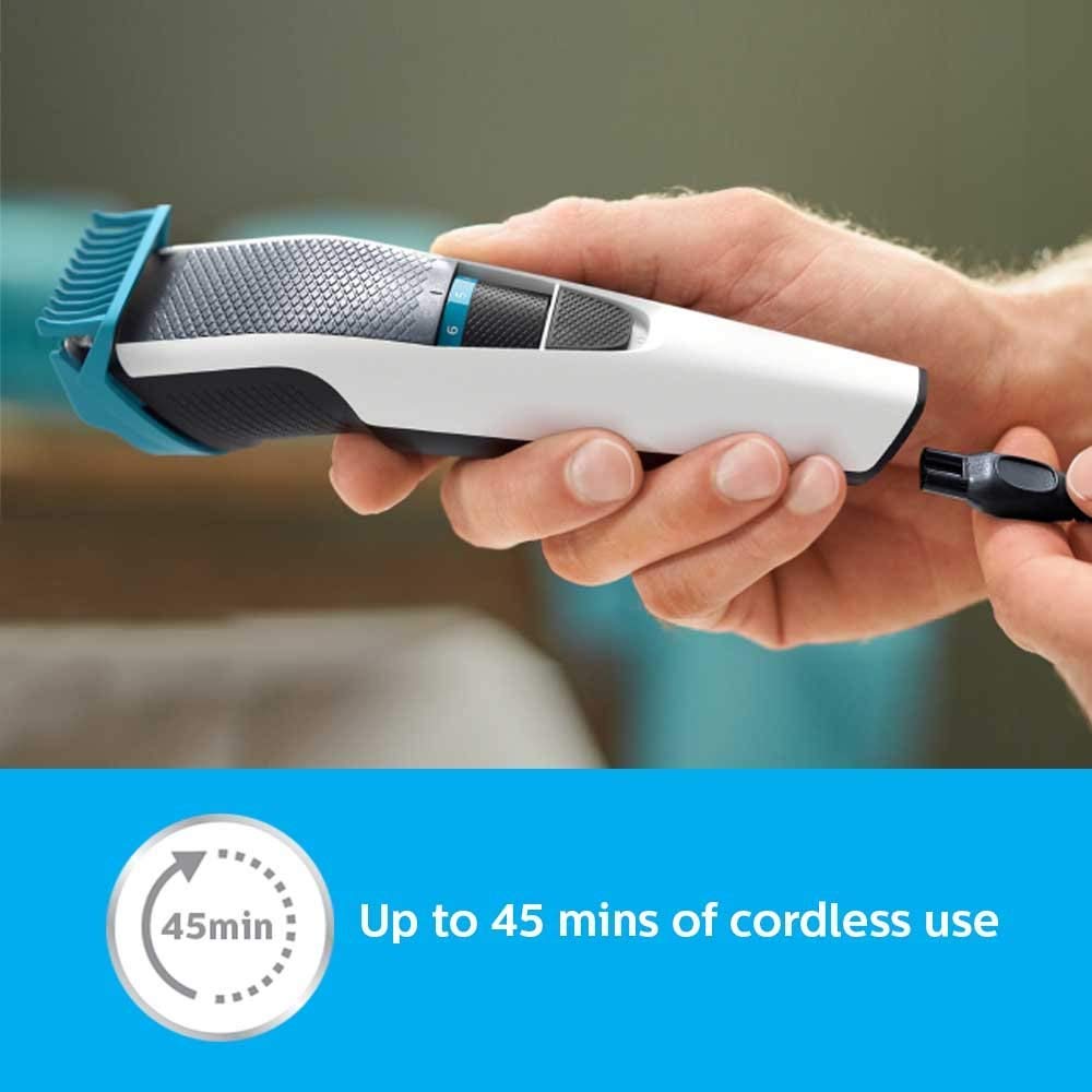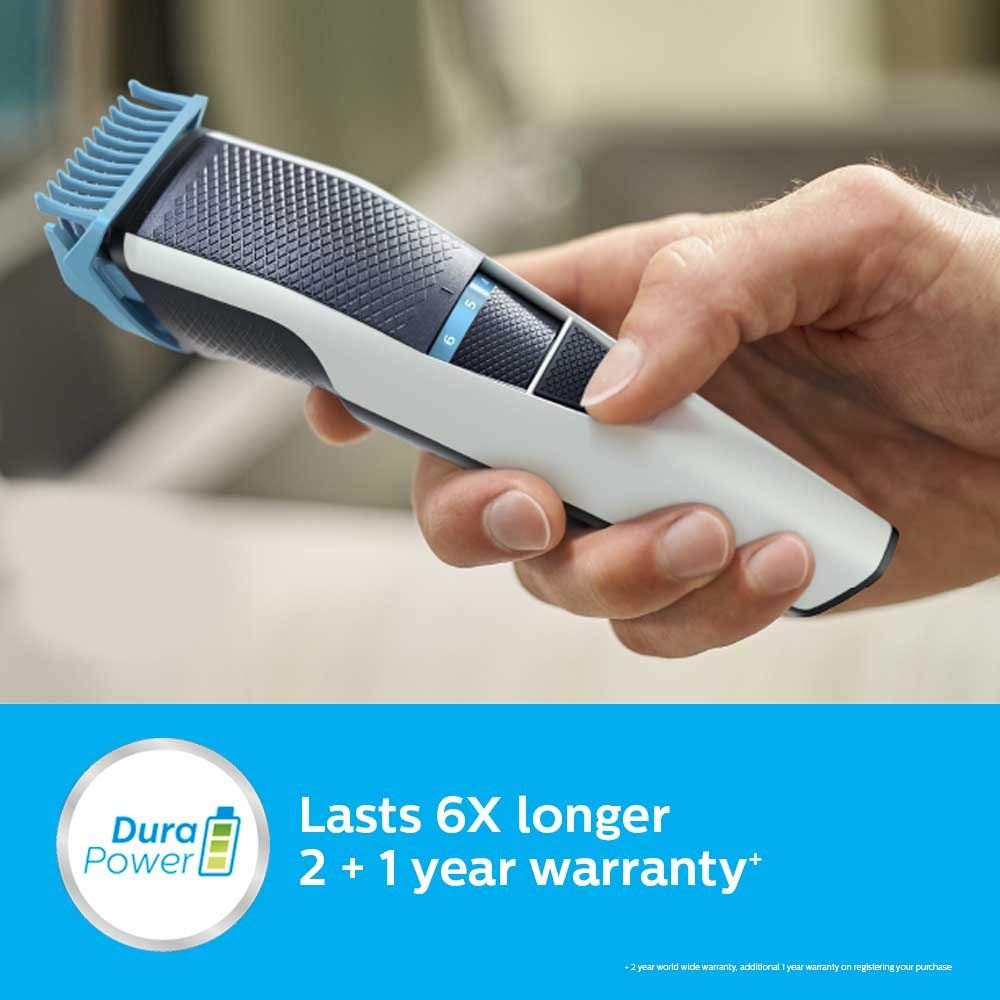 When you want to look your very best, Philips has the right grooming solution for you. The new Philips 3000 series trimmers capture more low lying hair for efficient, even trimming results, so you can easily achieve the 3-day stubble, short beard or long beard look you want. With its innovative Lift and Trim system the new trimmers cut up to 30 percent faster. Easy to use and built to last, the new trimmers last up to 6 x longer vs ordinary trimmers. Self-sharpening blades are long lasting and stay as sharp as on day one, while rounded tips and combs are gentle on your skin preventing irritation. |