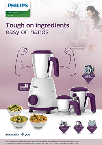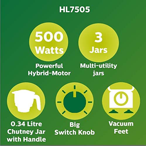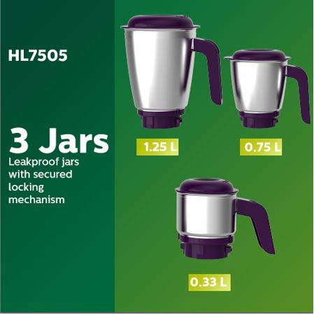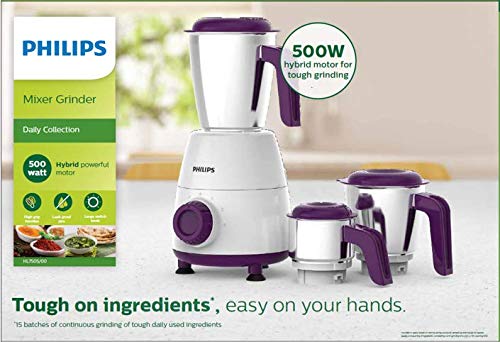 Philips Daily Collection HL7505/00 500-Watt Mixer Grinder with 3 Jars (White)