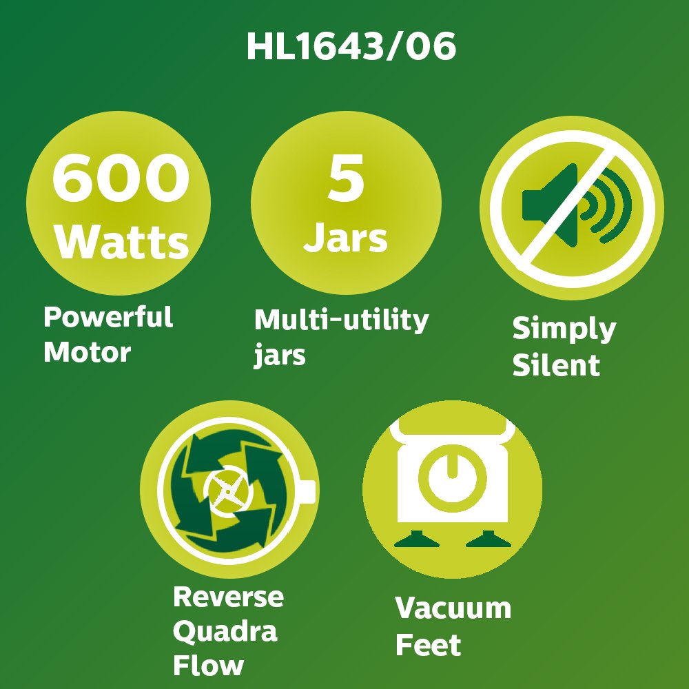 Philips Simple Silent Vertical HL1643 600-Watt Mixer Grinder with 5 Jars (Blue)
