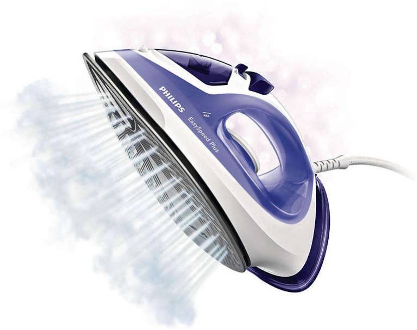 Let your freshly-washed clothes look crisp and tidy again by using this Philips EasySpeed steam iron. Its even steam distribution system will help you give a neat look to your formal or casual attire and bring out your bold persona.
