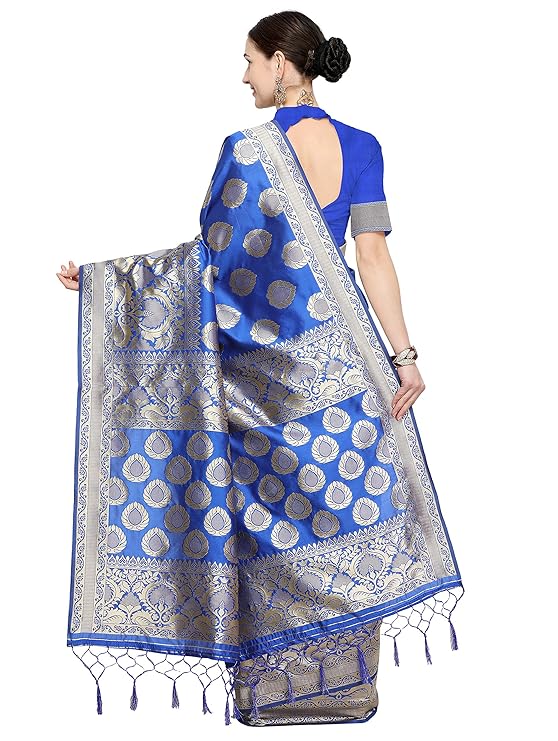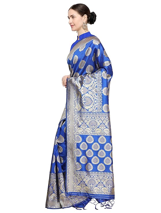 Saree Fabric: Banarasi Cotton Silk, Saree Colour: Blue & Saree Length: 6.3 mtr(Including Blouse)
