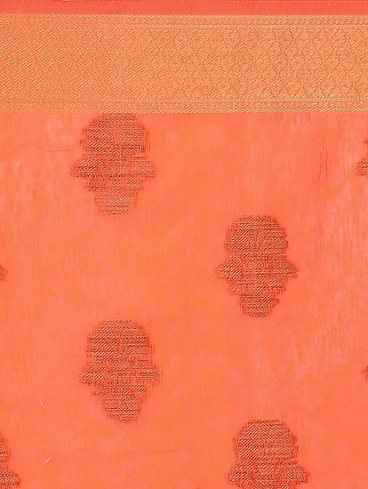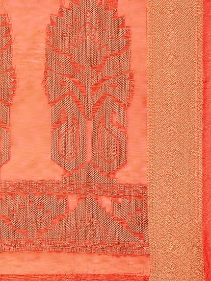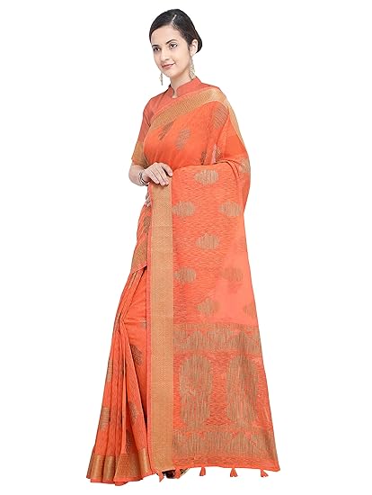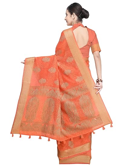 Saree Fabric: Banarasi Jute Linen Silk, Saree Colour: Orange & Saree Length: 6.3 mtr(Including Blouse)