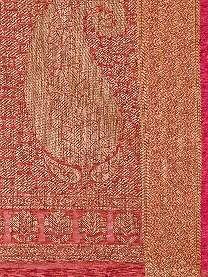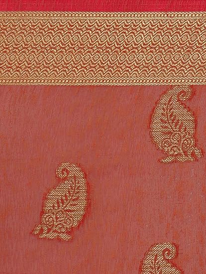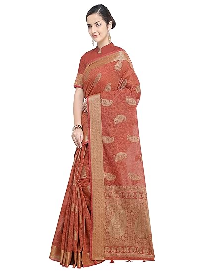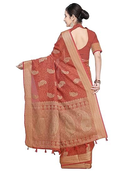 Saree Fabric: Banarasi Jute Linen Silk, Saree Colour: Rust & Saree Length: 6.3 mtr(Including Blouse)