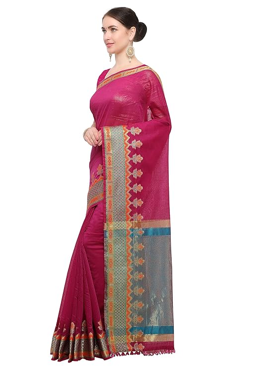 Saree Fabric: Silk Cotton, Saree Colour: Magenta & Saree Length: 6.3 mtr(Including Blouse)