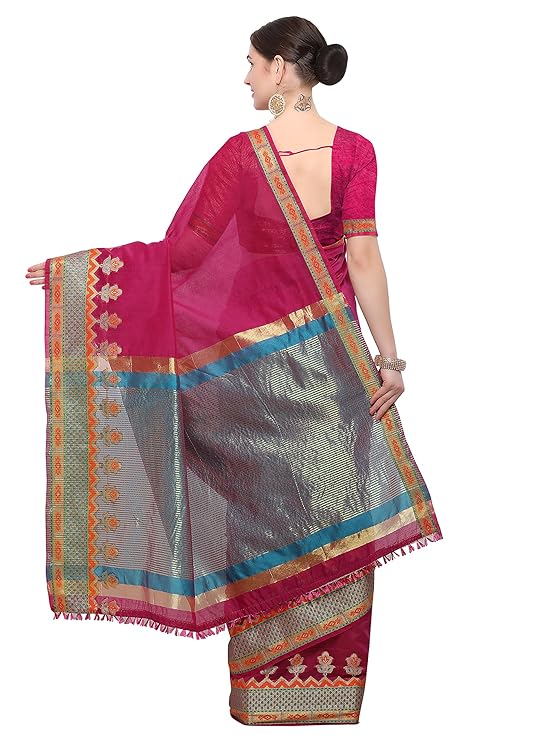 Blouse Fabric: Silk Cotton, Blouse Colour: Magenta, Blouse Length: 0.8 mtr, Type: Running Unstitched Blouse(Included In Saree Length 5.5 mtr + 0.8 mtr)