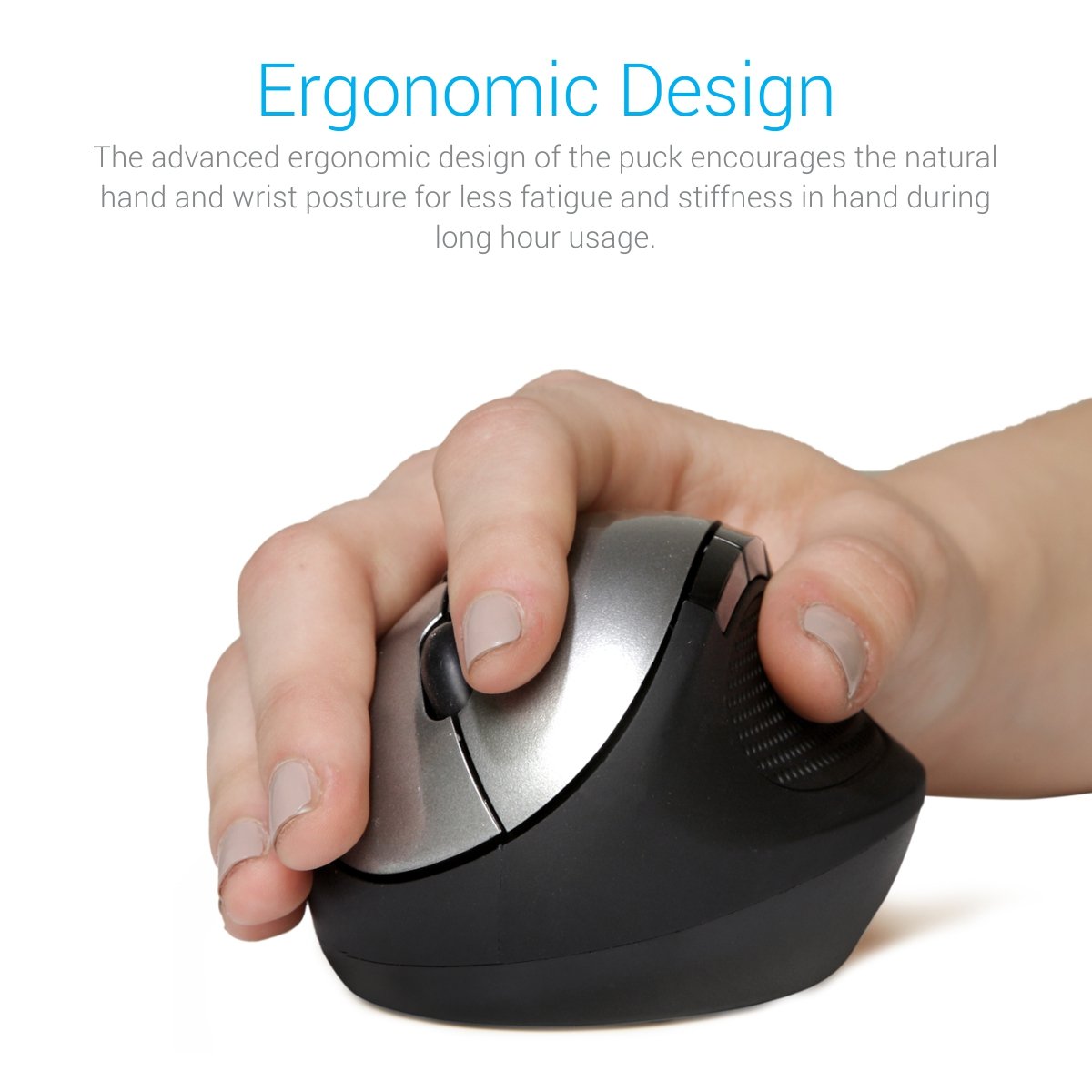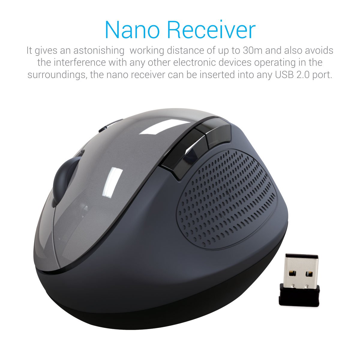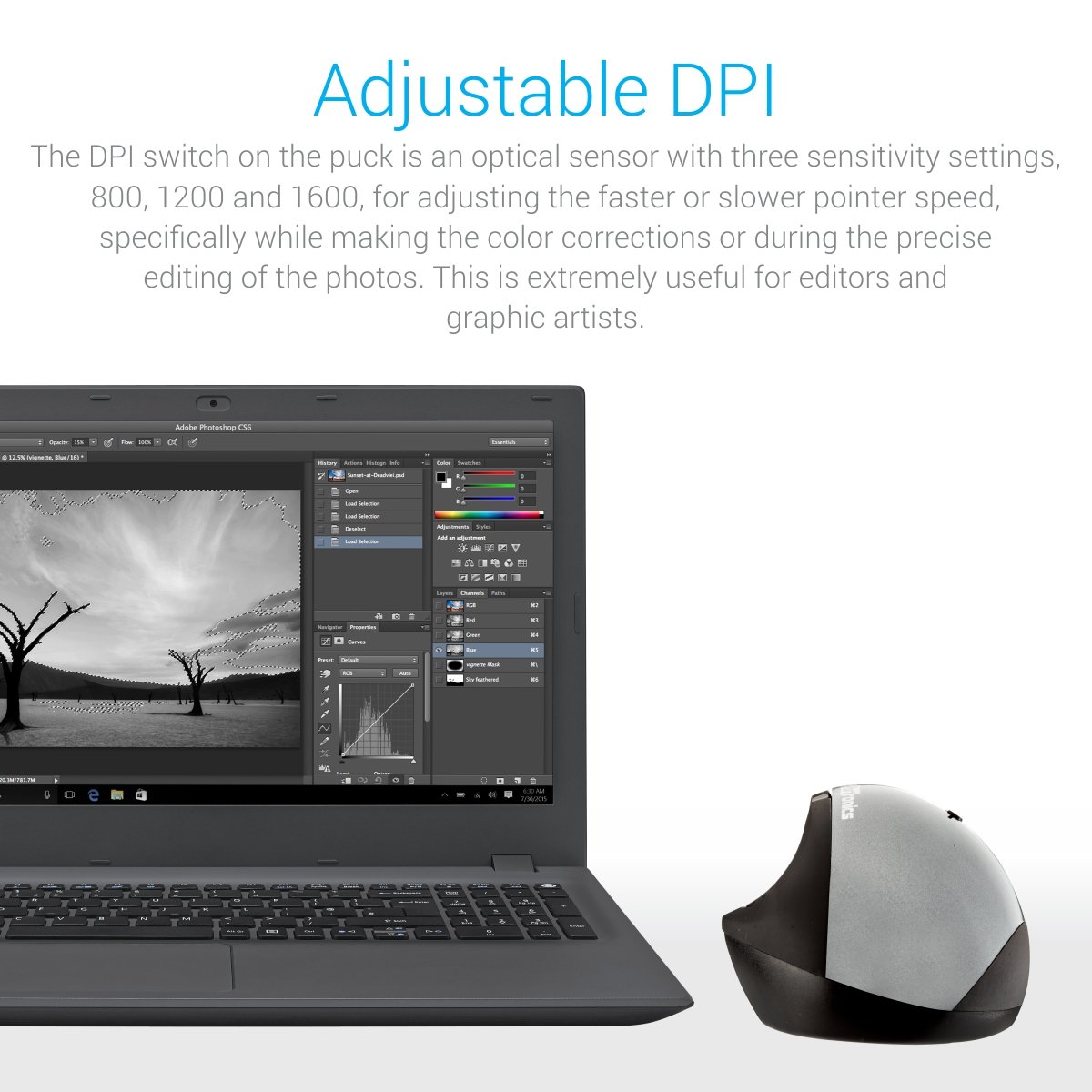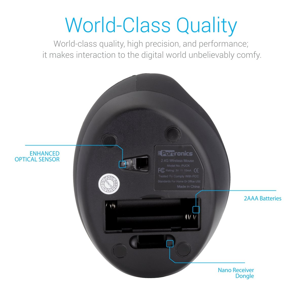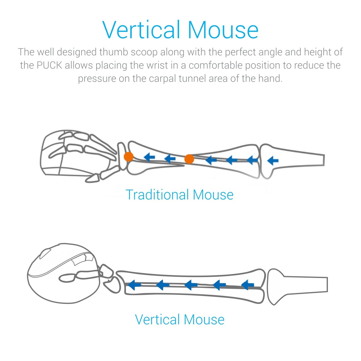 Pain in fingers caused by working for long hours using a standard mouse has been accepted as an occupational hazard. Now no more! The advanced ergonomic design of the puck encourages the natural hand and wrist posture for less fatigue and sti?ness in hand during long hour usage. The well designed thumb scoop along with the perfect angle and height of the PUCK allows placing the wrist in a comfortable position to reduce the pressure on the carpal tunnel area of the hand. The PUCK is designed to operate at 2.4GHz technology for extremely fast data transmission and super stable operation compared to 27MHz mouse. It also gives an astonishing working distance of up to 30m and also avoids the interference with any other electronic devices operating in the surroundings. PUCK is a plug and play mouse which can easily be connected with the PCs, laptops or Mac books using a Nano receiver provided along with the mouse. The Nano receiver stows away in the battery compartment of PUCK when not in use. PUCK is compatible with operating systems such as Windows XP/ Vista/ 7/ 8, Mac OS and Linux. The Nano receiver can be inserted into any USB 2.0 port. The DPI switch on the puck is an optical sensor with three sensitivity settings, 800, 1200 and 1600, for adjusting the faster or slower pointer speed, specially while making the color corrections or during the precise editing of the photos. This is extremely useful for editors and graphic artists. The front and back buttons provided on the top of the puck for faster navigation experience |