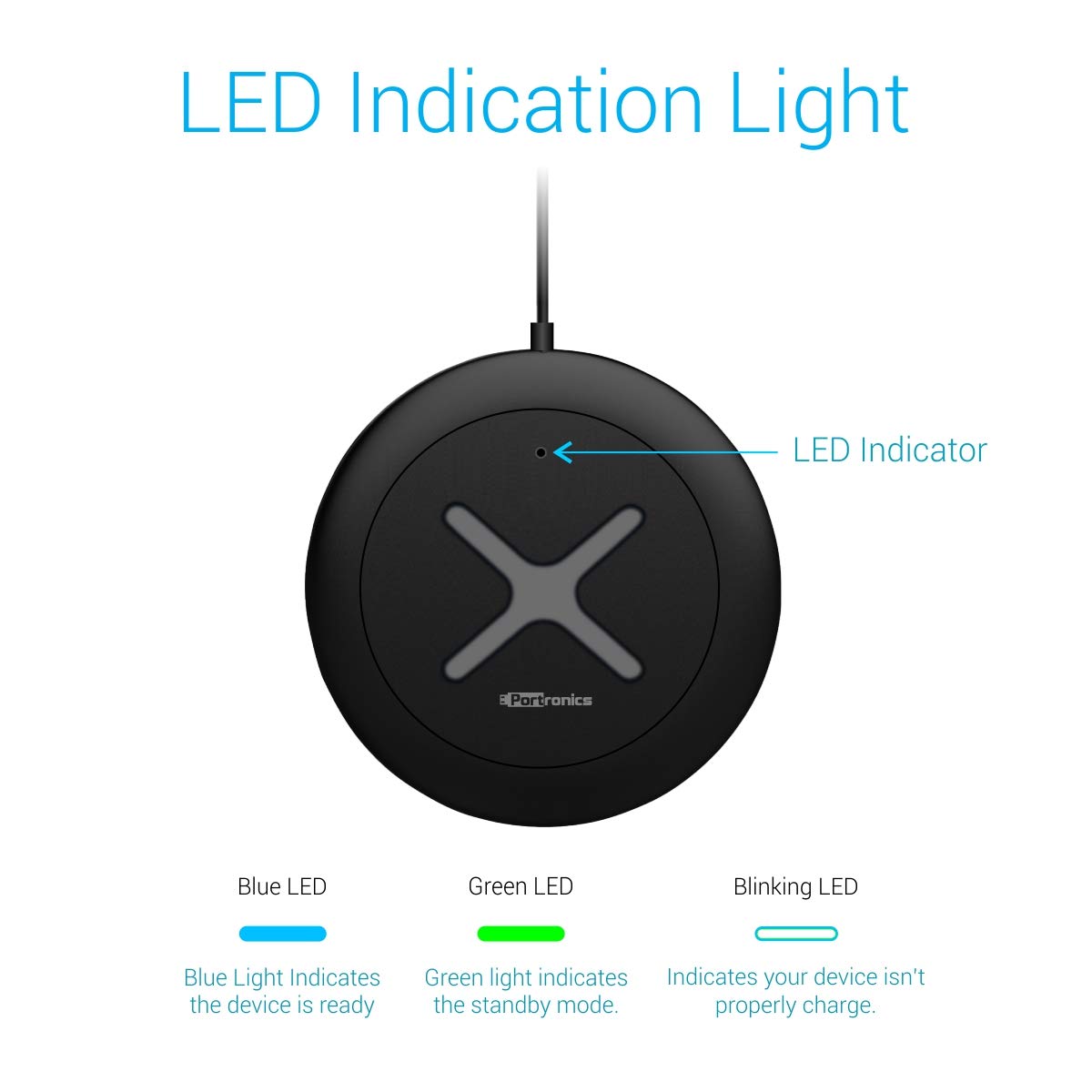 A bright LED indicates the charging status. It turns blue when charging and green on standby mode. IF LED keeps blinking it means phone's backside is some any metal, coins, or smartcard on the charging area.