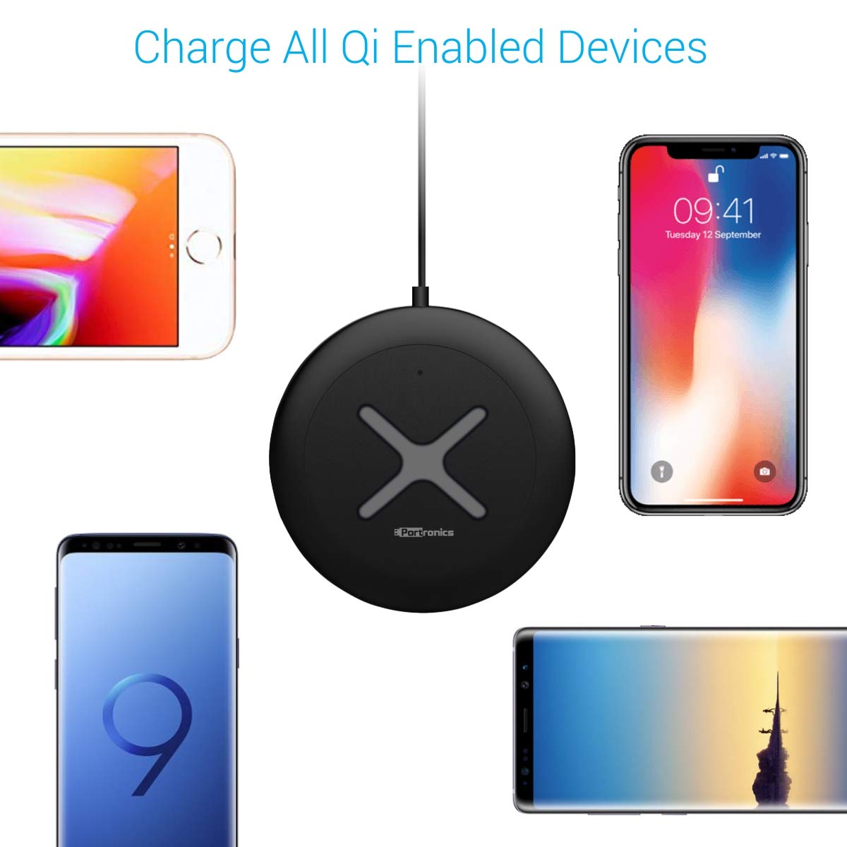 Charge mobile devices including iPhone 8/8Plus/X, Samsung Galaxy Note 8, S8, S8 Plus, S7, S7Edge, S9 / S9+ / S8 / S8+/ S7 / S7 edge / S6 edge+, and Note 5 and all other Qi enabled devices