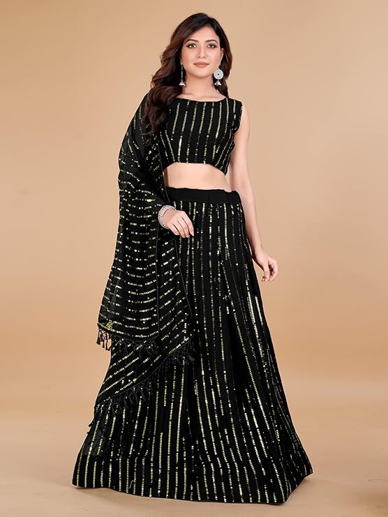 Work Type- Sequins Embroidery Work; Lehenga Length : 44 Inch, Choli - 1 Mtr, Dupatta - 2.50 Mtr, Lehenga Gher - 3 Mtr