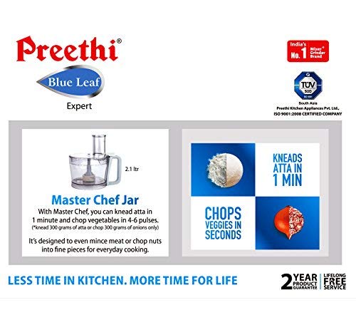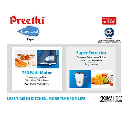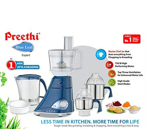 Preethi MG214 Blue Leaf Expert 750 W Mixer Grinder with Master Chef jar