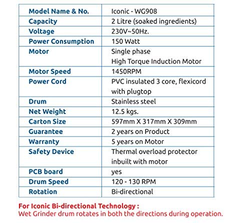 Preethi WG908 2-Litre Wet Grinder (Pink)