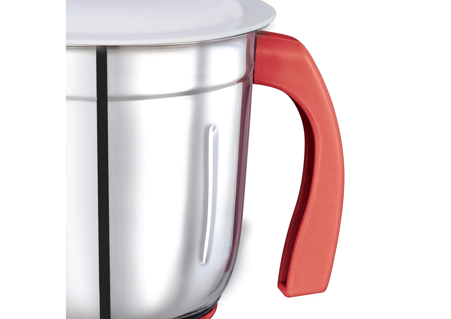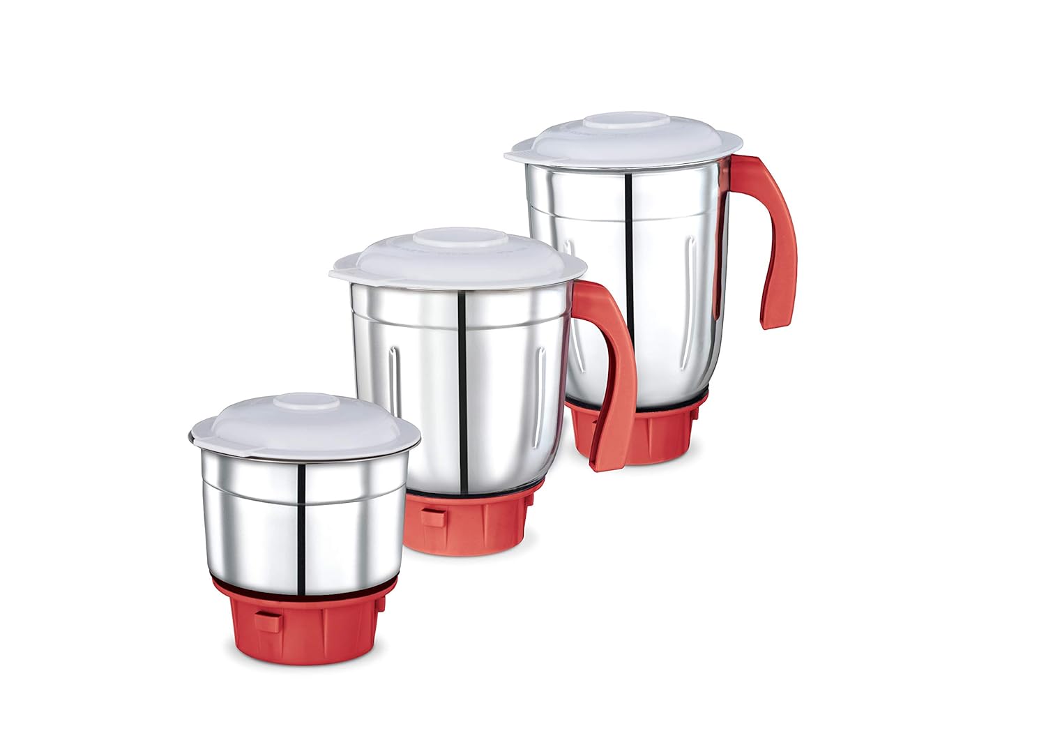 3 stainless steel jars, Wet jar (1.5 Litres), Dry jar (1.0 Litre), Chutney jar (300ml)