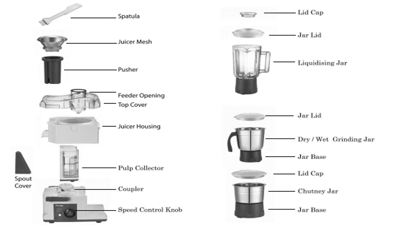 Content: Prestige Platina Juicer Mixer Grinder with 2 Stainless Steel Jars and 1 Juicer Jar