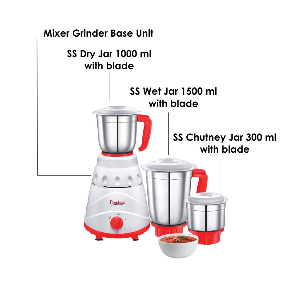 Prestige Viva 550-Watt Mixer Grinder with 3 Jars (Red)