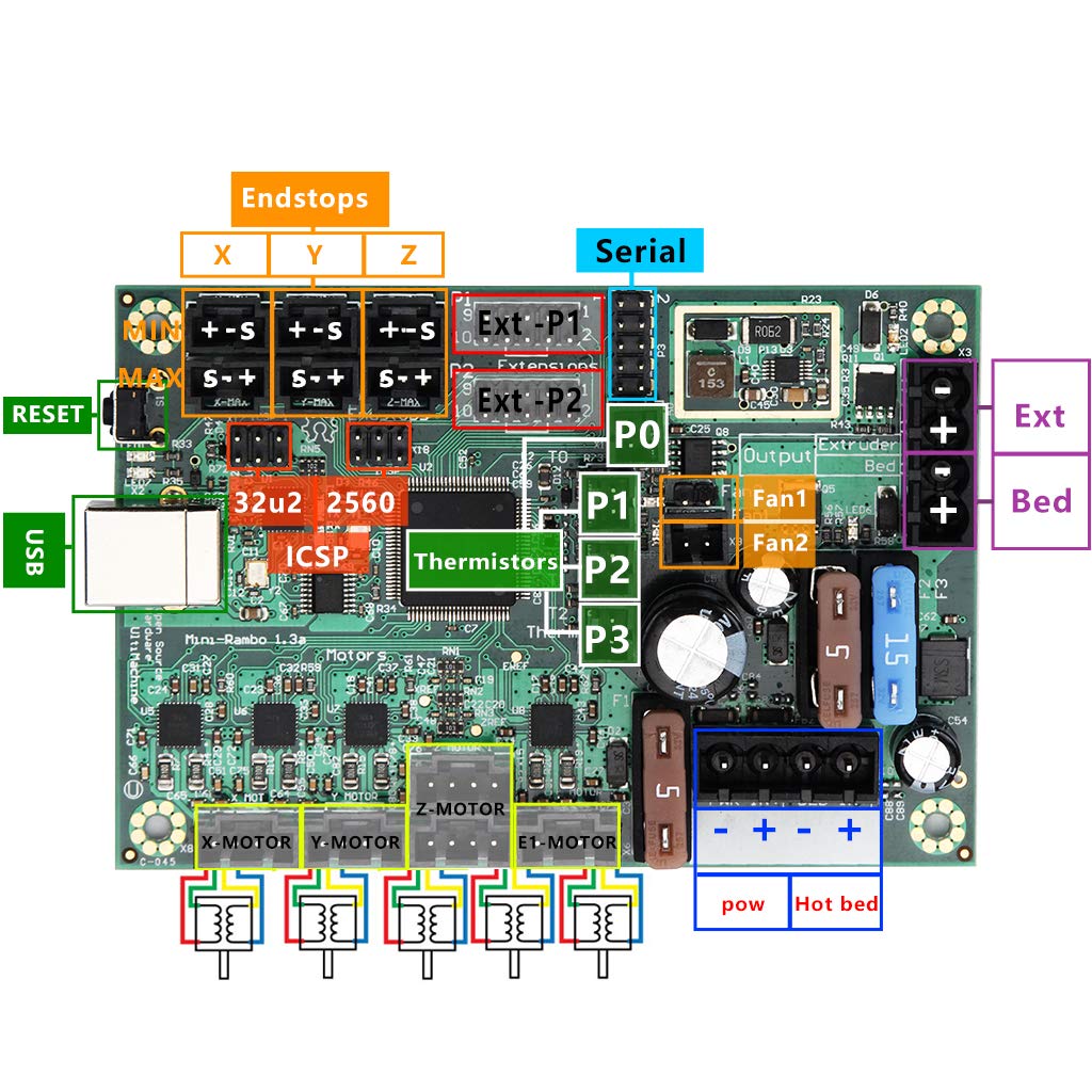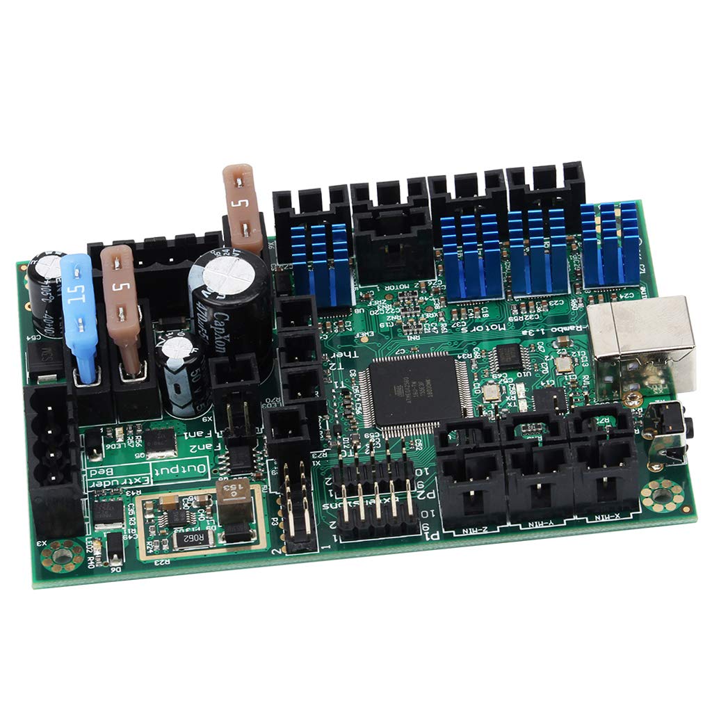 Description: - This board is based off RAMBo, the Arduino MEGA design, and the work of RepRap community,It has 4 stepper drivers and 4 mosfet switched outputs. - Arduino MEGA compatible Atmega2560 and Atmega32u2 processors are compatible with all RAMPS class firmware Crystals for both usb and mcu (timing accurate to 10ppm). - 3 Thermistor jacks,Motor Drivers,4 A4982 1/16th microstep motor drivers(2 connectors on Z for Prusa Mendel and other dual Z printer designs). - PWM Outputs for (XY), Z, E0 stepper current control instead of digital trimpot,Current limit on driver IC VCC to prevent permanent latchup - Microstep mode configured by MCU through firmware (no jumpers needed) Test points for driver control signals,Step and Direction pins are on their own ports for synchronous movement capability PWM DC outputs (Extruders, Fans, Etc.) - 4 outputs (1 Extruder, 1 BED, 2 low power (fan,etc) Low resistance mosfets for cool running Indicator led for each channel. Specification: - Material: - Size:105x70mm Package Includes: 1 Set 3D Printer Motherboard(As the Picture) |