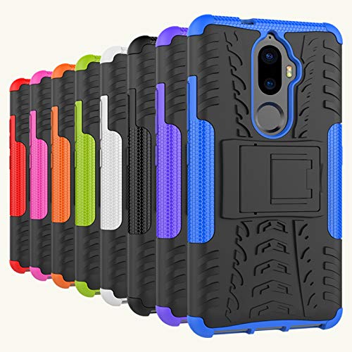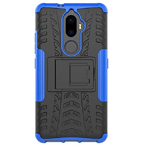 Prime Retail Shock Proof Dual Layer Hybrid Armor Back Cover Case with Kickstand Wheel Pattern for Lenovo K8 Plus (Blue)