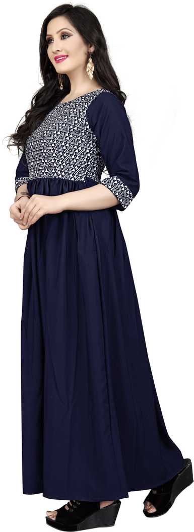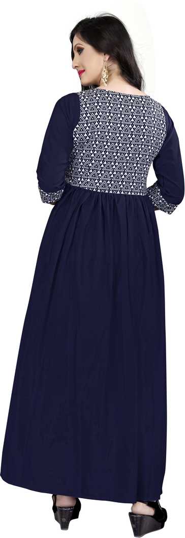 SUNG195_XL - New Latest Designer Printed & Plain Simple American Crepe Blue 3/4th Sleeve Round Neck Western Fancy Long Gown Dress |