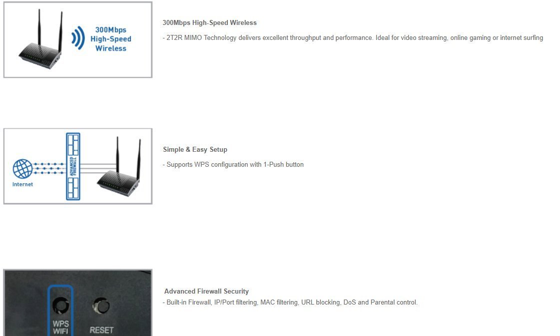 | Additional Features | 300Mbps High-Speed Wireless, Simple & Easy Setup, Advanced Firewall Security |