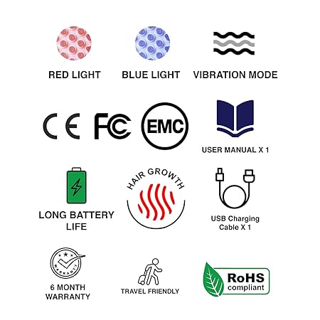 Product Benefits- Stress Relief Hair Growth Head Massage Vibration Massage Red Light Therapy Blue Light Therapy
