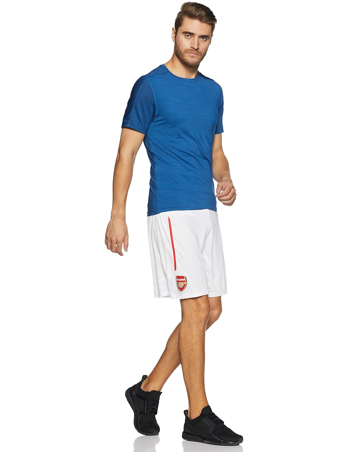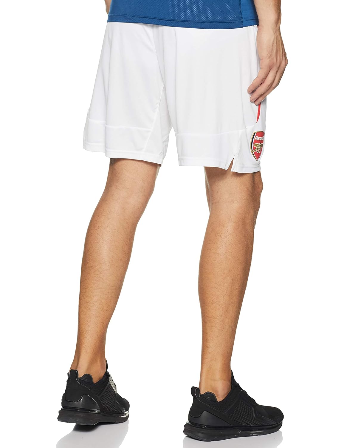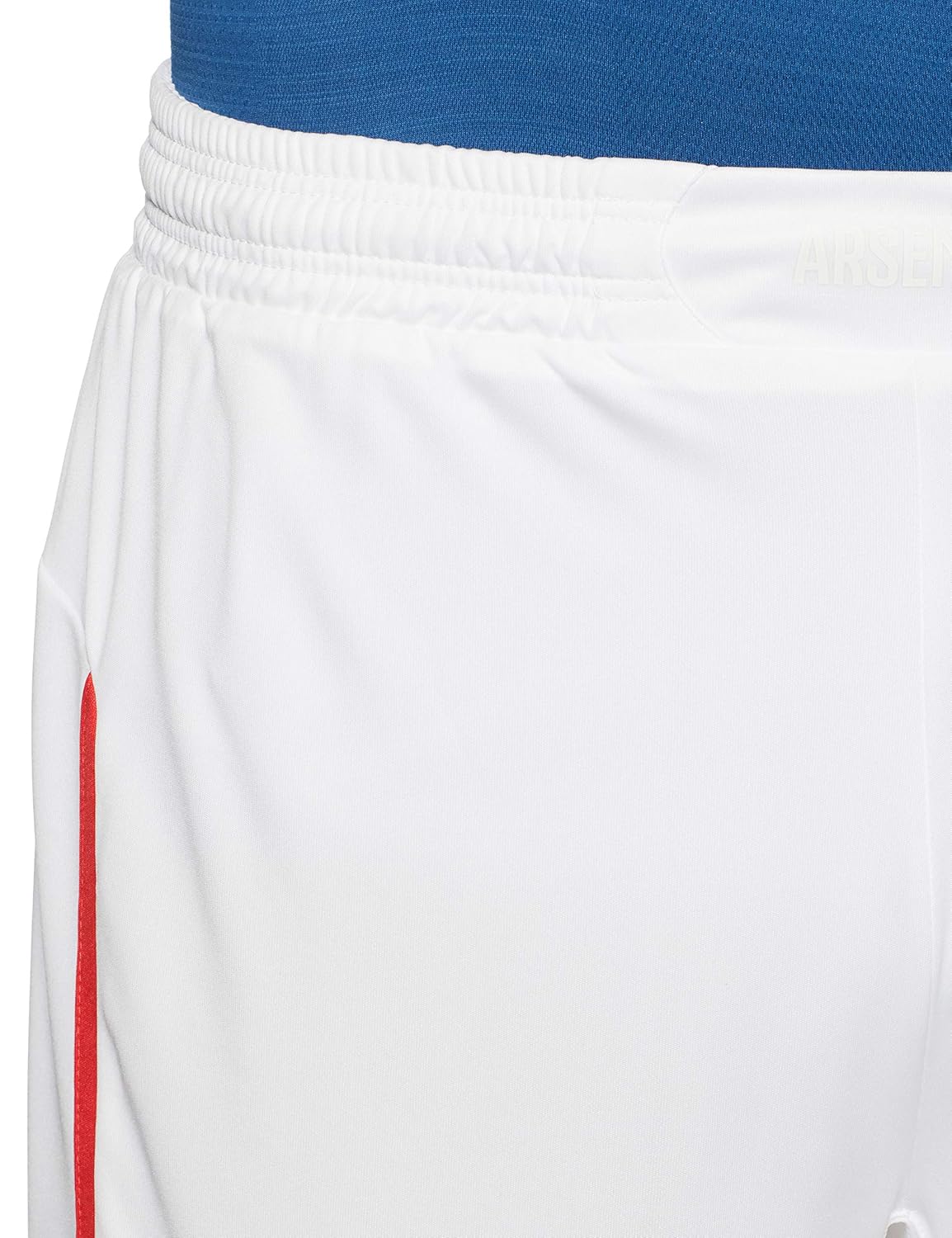 White, knit shorts, engineered with dry cell technology, has an elasticated waistband with drawstring fastening, Arsenal FC print on the waistband on the front, panelled contruction, contrast taping on the front, textured panel below the waistband on the back and along the inseams, Arsenal FC applique detailing on the right thigh, branding on the left thigh. |