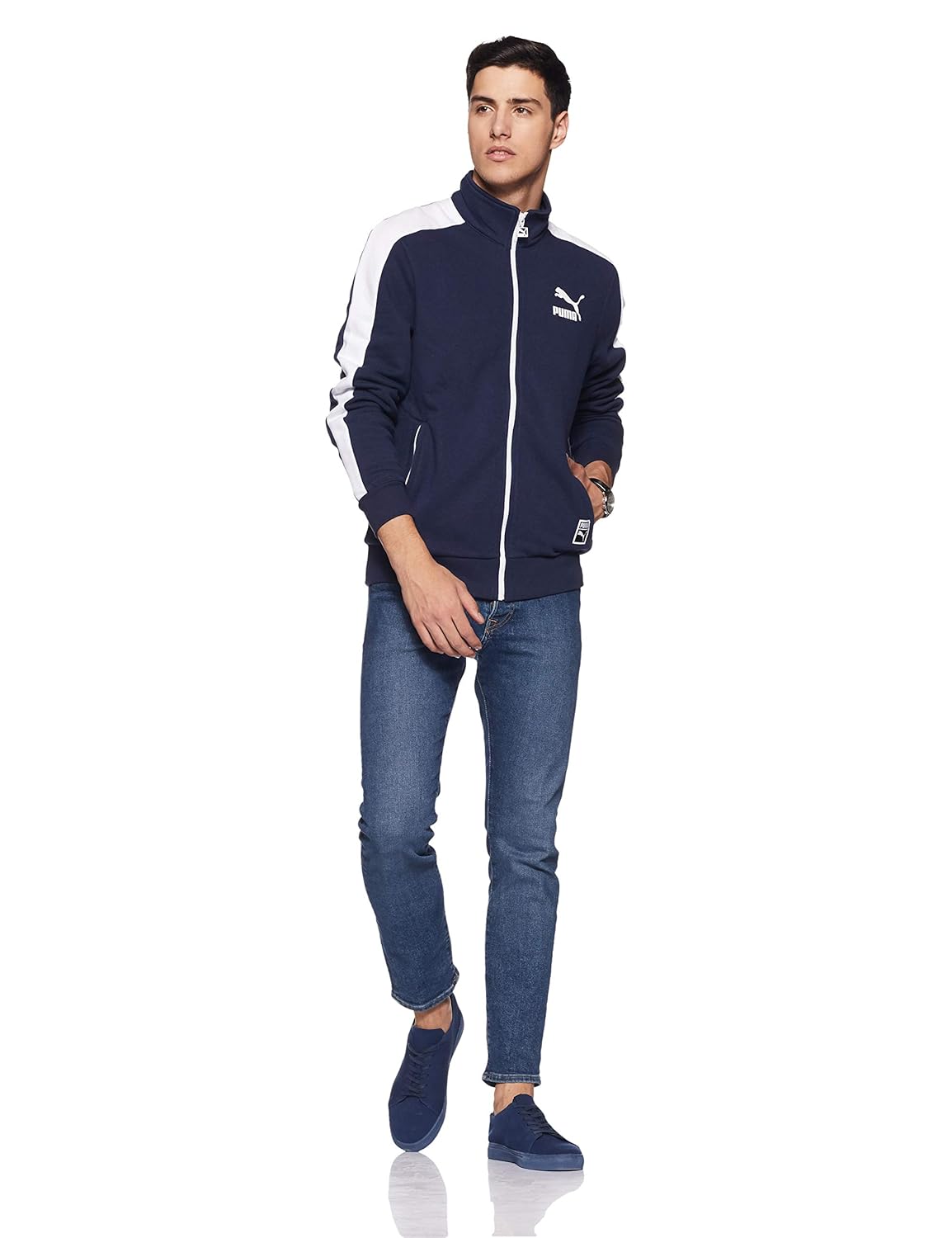 Flaunt the latest Puma styles. Indiat7trackjacketpeacoat is comfortable yet stands out in the crowd. Pair it with your favorite Puma sneakers and rule the streets. |