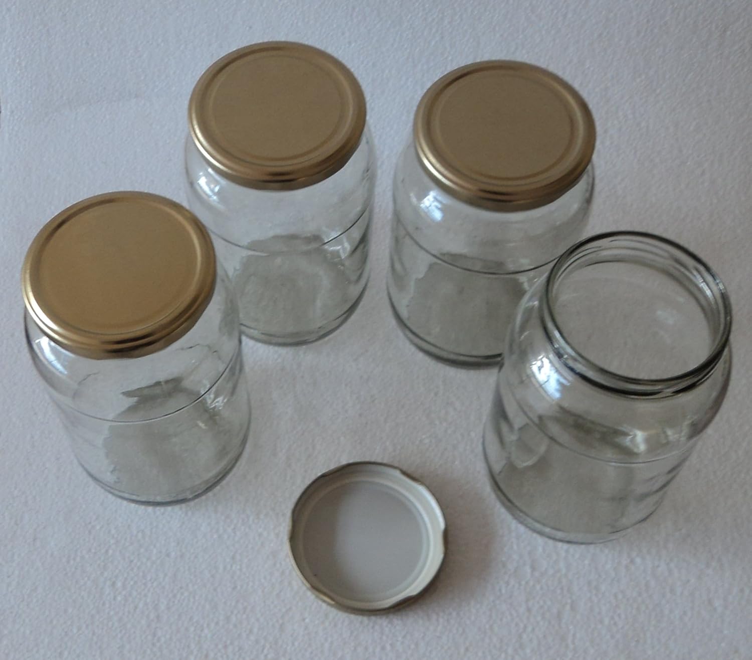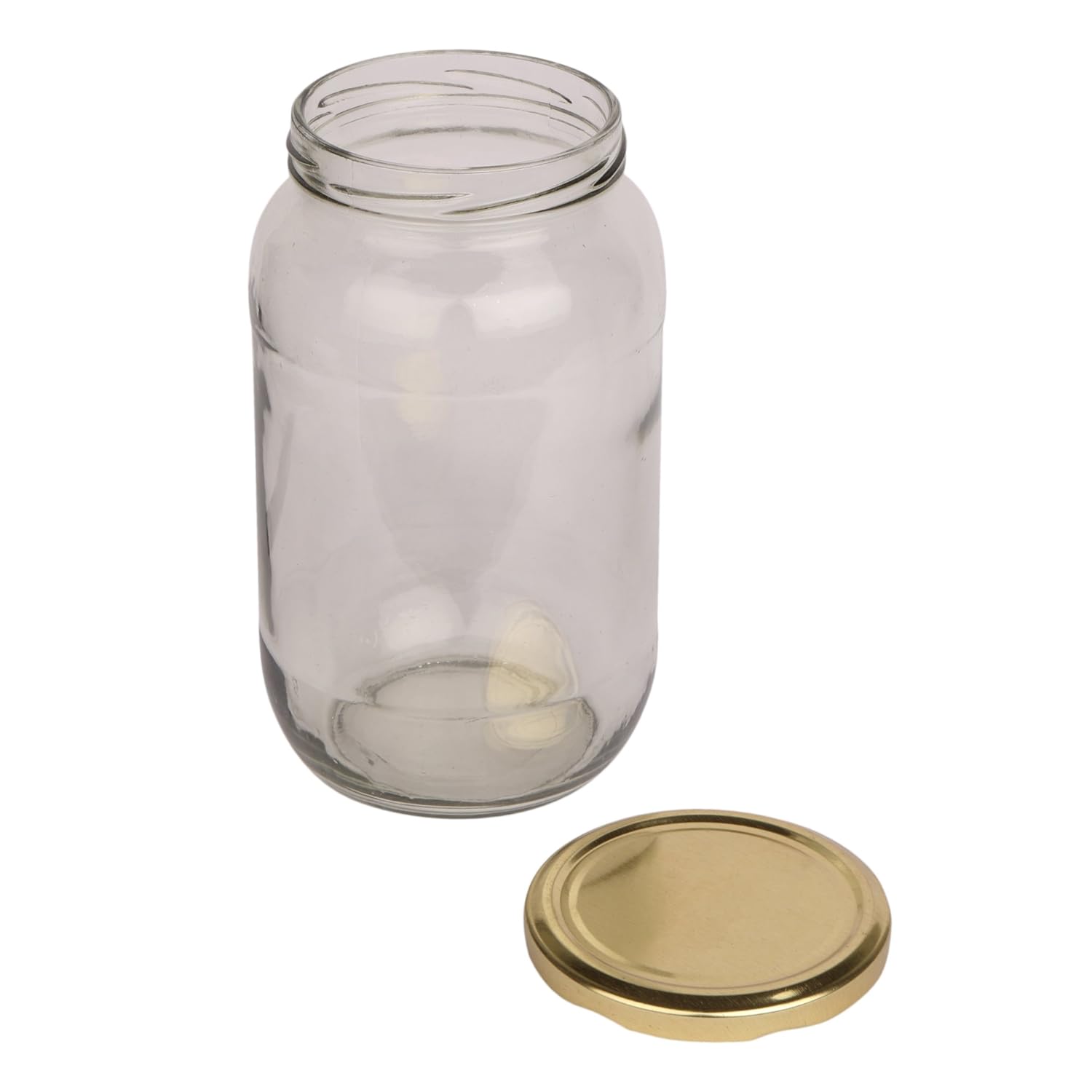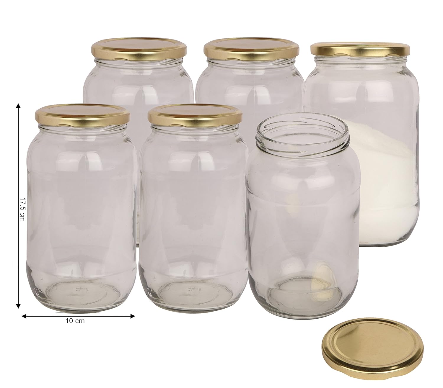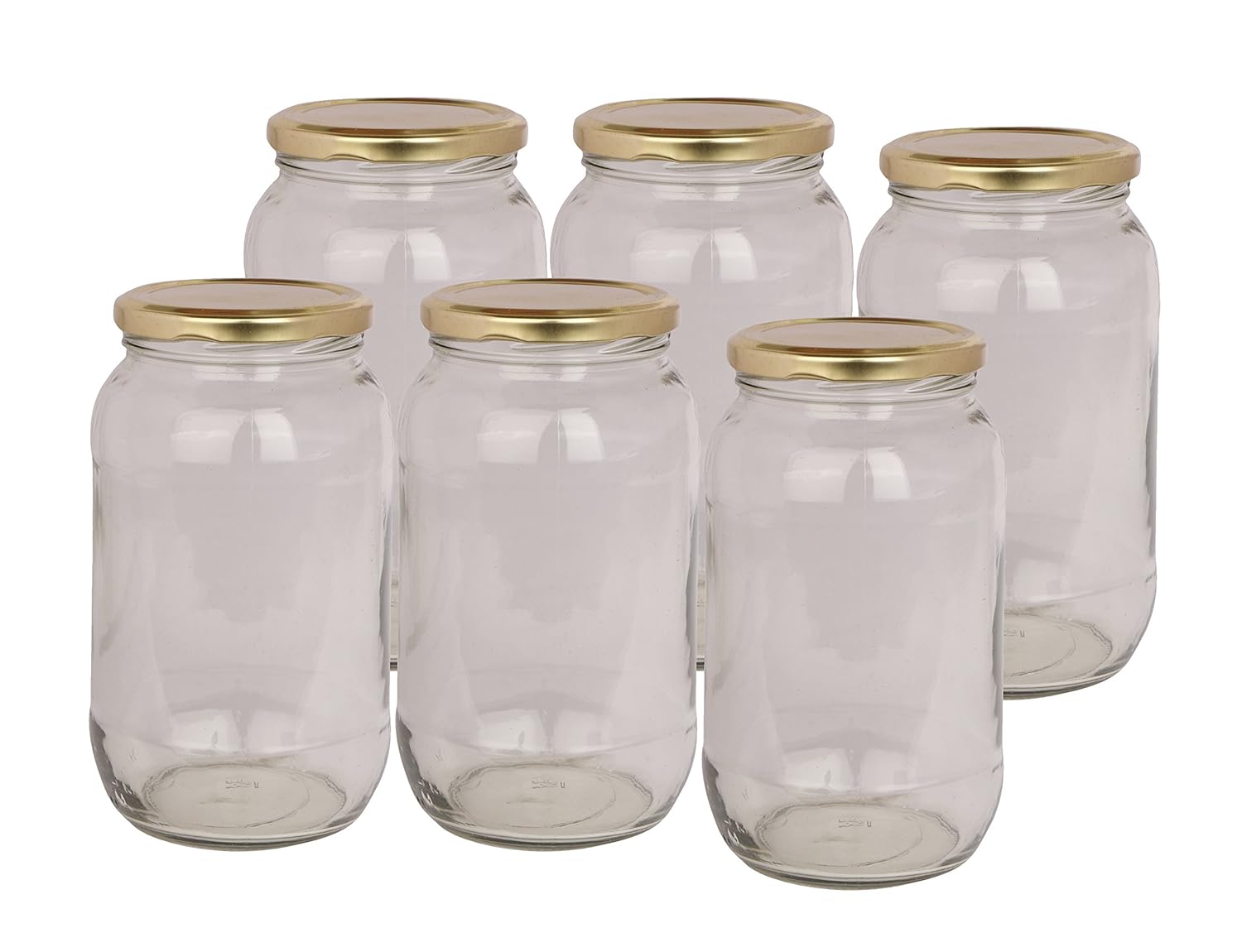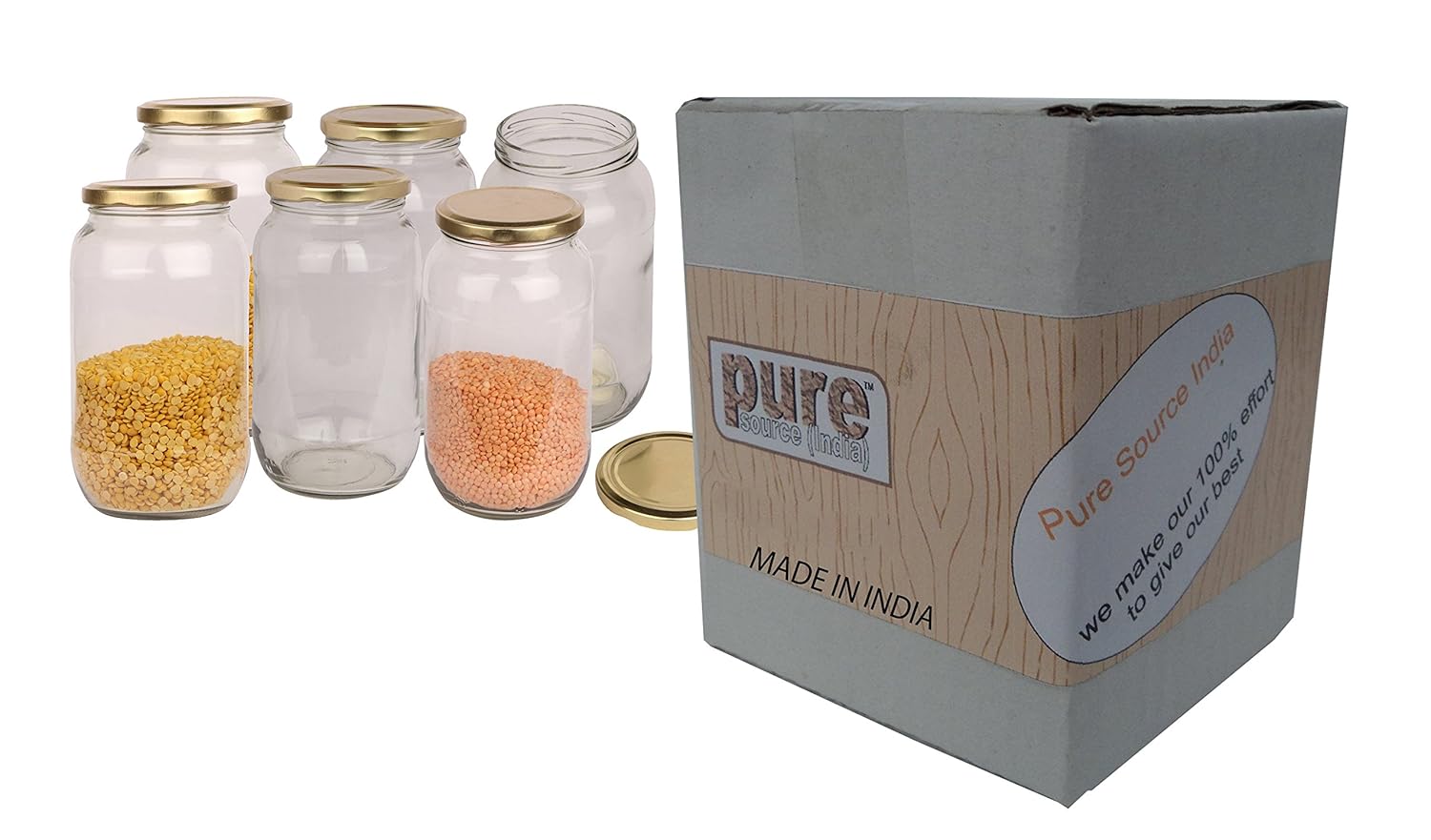Pure Source India Glass jar Capacity 1 LTR Set of 6 Jar,Coming with Metal Golden Color Cap air Tight and Rust Proof .(Kitchen Stuff Storage Glass Jar)