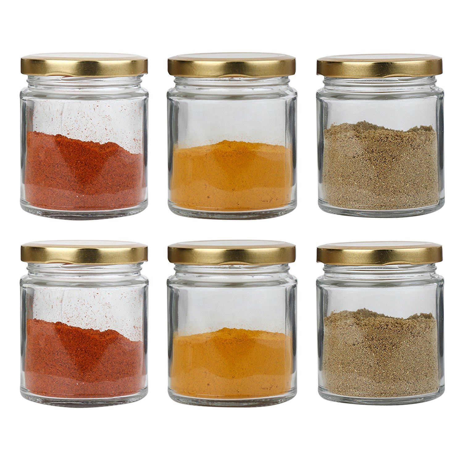Pure Source India Small Glass jar Set of 12 pcs Coming with Metal Golden Color Air Tight and Rust Proof Cap, Capacity 50 Gram About Made in India (Holi Special)