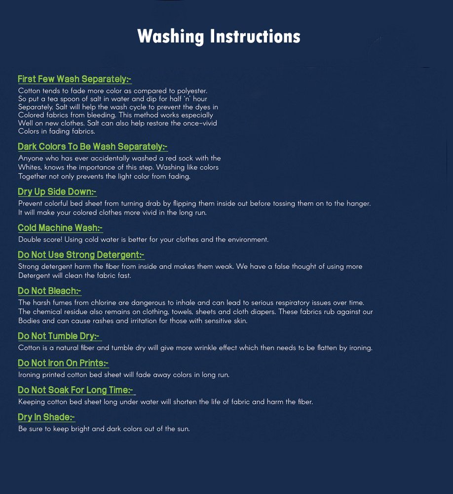 Care Instructions: Regular machine or hand wash in normal or luke warm water