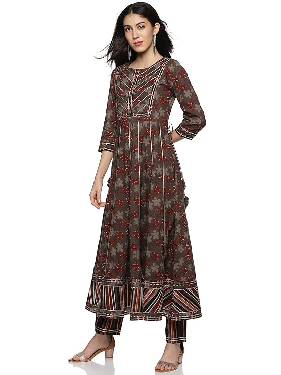 RAJMADIRFABRICS Women's Cotton Anarkali Kurta Pant & Dupatta Set
