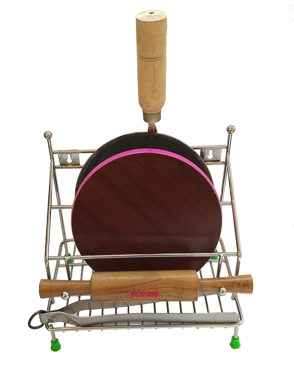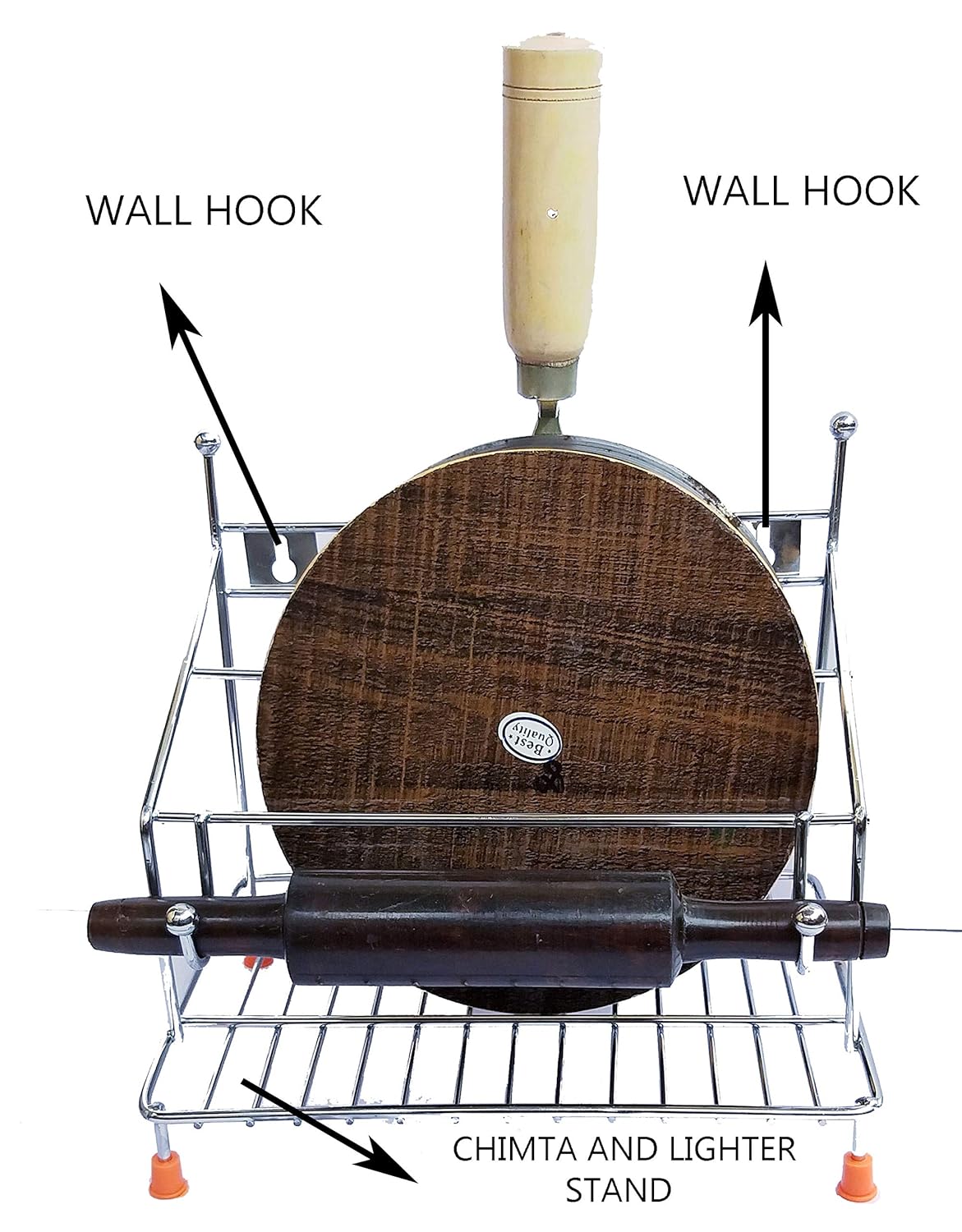 RBS New Premium Quality 4 in 1 Stainless Steel Chakla Belan Tawa Chimta Lighter Stand Holder
