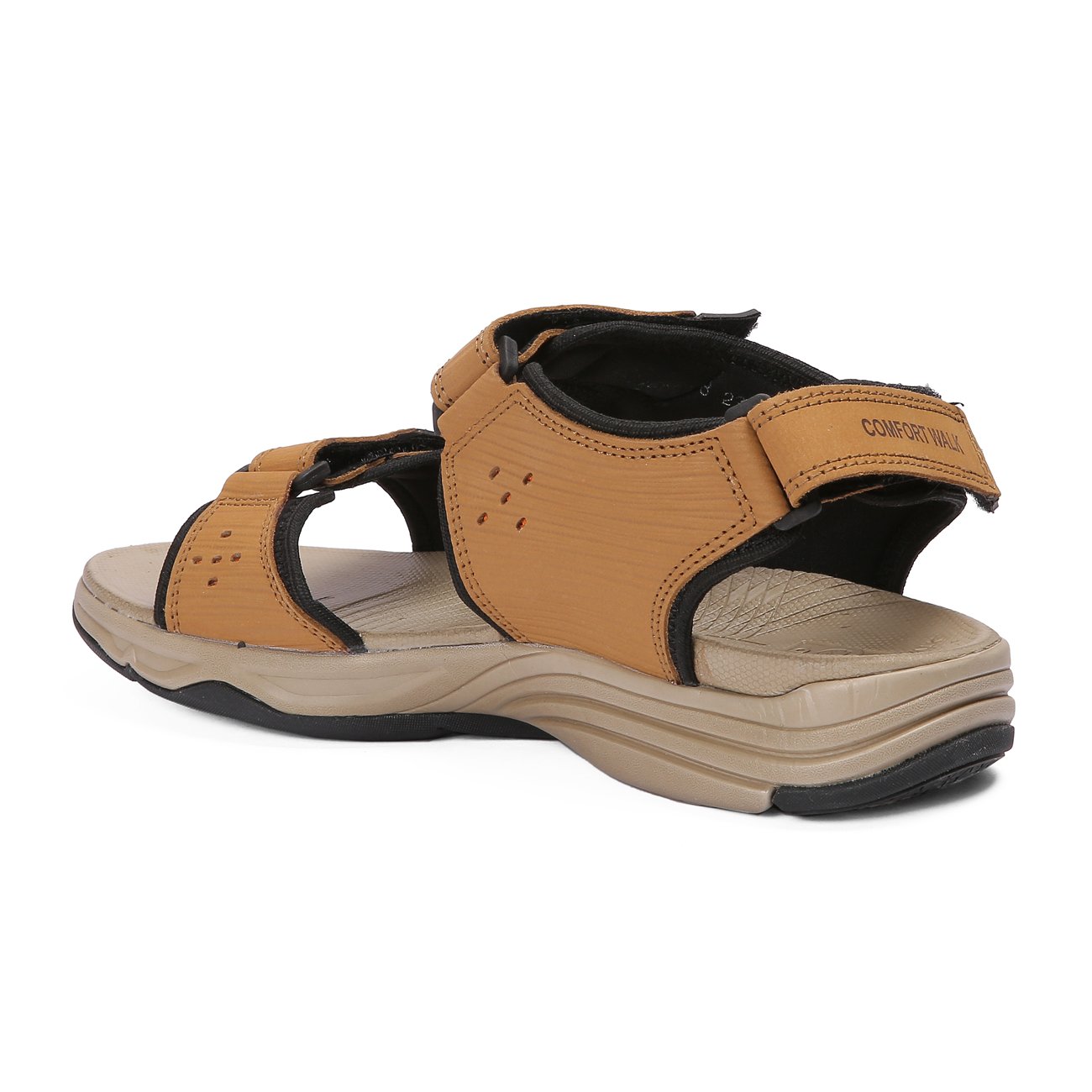 Put your best foot forward this summer and look effortlessly cool, in these tan coloured sandals from Red Chief. Featuring contrasting trims, a textured insole and Velcro straps, these sandals are high on style and comfort. While the leather lining offers optimum wearing comfort, the PU (polyurethane) sole offers multi-surface traction. These sandals can be styled with almost all the casual outfits in your wardrobe. |