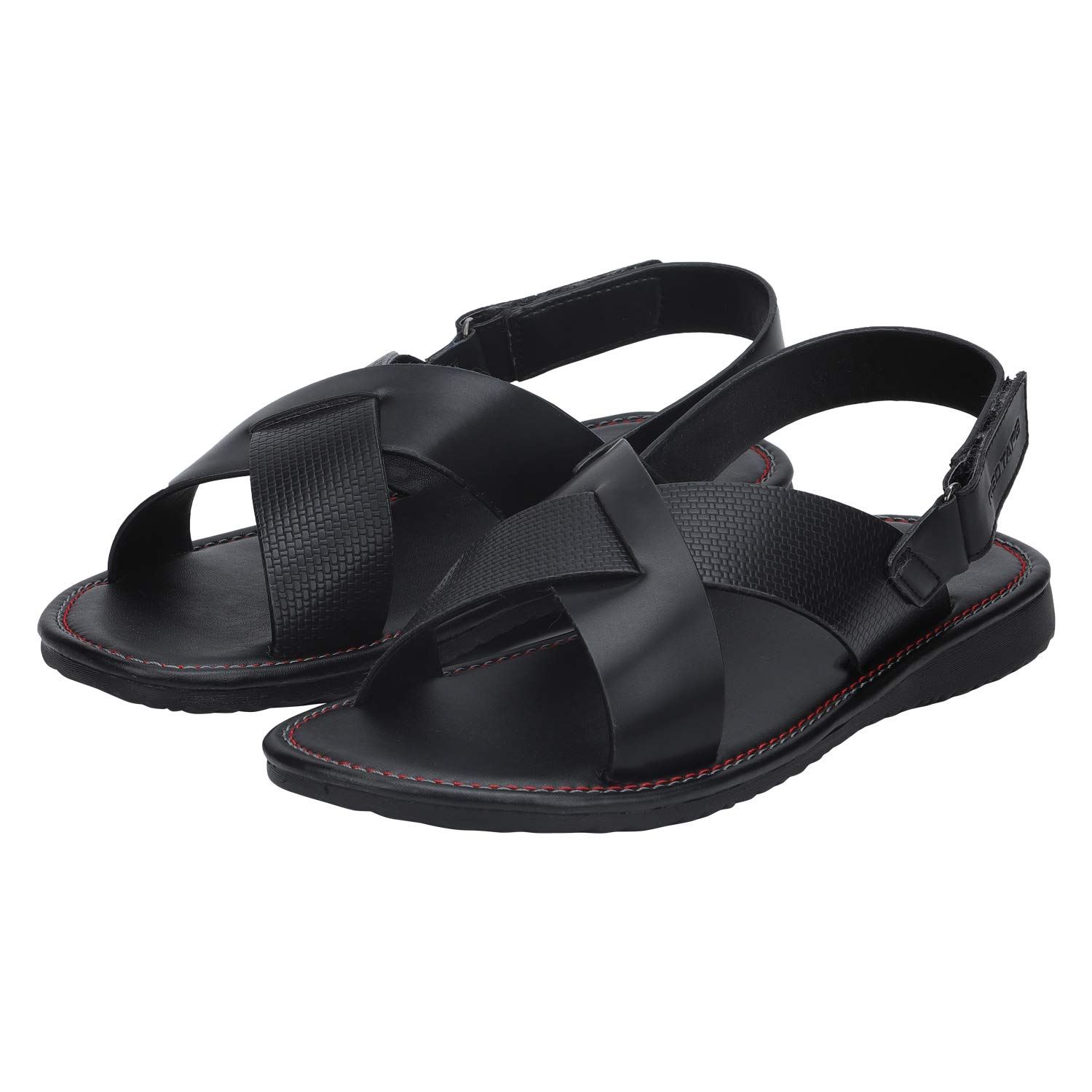 Offering a seamless fusion between comfort and style, these black sandals from Red Tape exudes an undeniably cool, charming aura. Featuring stylised criss-cross design, Velcro straps and a sleek design, these sandals are designed for the fashion elites. These sandals have a synthetic PU (polyurethane) upper that offers optimum comfort, while the Airmax PU (polyurethane) makes it lightweight as well as highly durable. These versatile sandals can be styled with almost all the outfits in your wardrobe. |