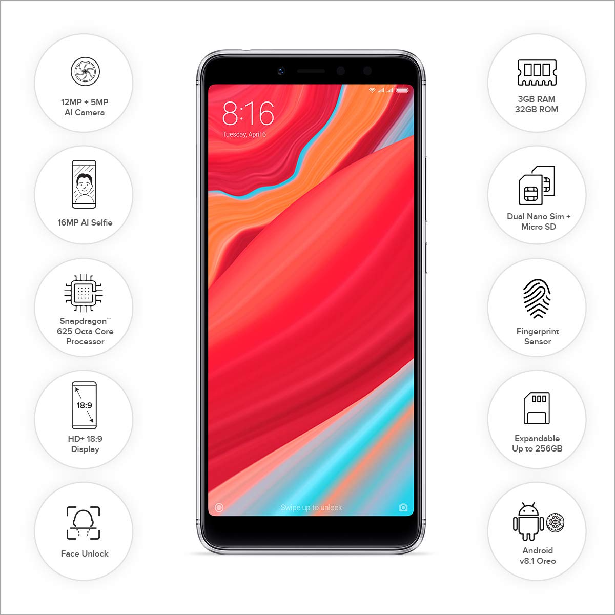 | Whats in the box | Redmi Y2, Power adapter, USB cable, SIM eject tool, Warranty card, User guide, Clear soft case |