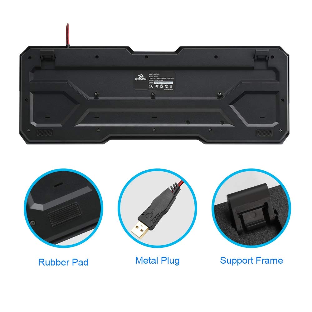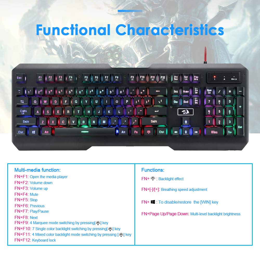 Redragon K506 Centaur 7-Color Rainbow Backlit Full-Size Gaming Keyboard With Numeric Keypad (Black) The Redragon K506 isn't your average gaming keyboard. Not only is it over-engineered and built to take a beating, it is loaded with features including double-shot injection molded keys, quiet gaming keys, crisp and bright LED backlighting, and 7-color LED with 10 lighting effects. Features: What's in the box |