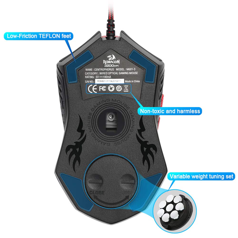 In its class the Redragon M601 Gaming Mouse represents the perfect blend of features, quality, durability, and value for any serious gamer. M601 has designed a superb, highly customizable wired gaming mouse with the M601. The Gaming Mouse is elegantly stylish and comfortable thanks to a contoured smooth ergonomic design. This makes the mouse perfect for long lasting gaming sessions providing maximum comfort and support. The mouse features a 3200 DPI sensor that offers up to 15G of acceleration, 3600 FPS, and incorporates Teflon feet for ultra-fine control. In addition the mouse offers many Pro Features such as quick adjustable DPI, programmable buttons, different gamer profiles and adjustable weight tuning set. The Redragon M601 is made of High Quality ABS Material, durably constructed and built to last even with constant intense gaming sessions. This mouse also comes equipped with an anti-skid wheel and red backlights for an epic look. The Redragon M601 has everything you need for gaming, from excellent ergonomics, to a precise sensor and a super-fast game engine. |