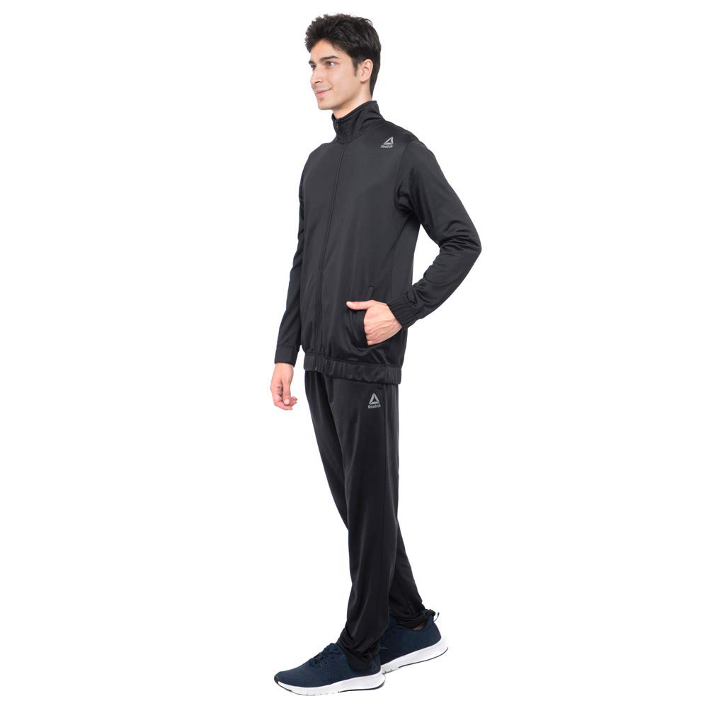 Embolden your athleisurely style. This trim fit tracksuit is equally at home in the gym or about town. sidepockets add secure storage to the versatile full zip jacket. A draw string waistband adjusts the fit. The SPEEDWICK construction effectively wicks moisture away from the skin, helping you stay dry and comfortable.Available in Black Made of 100% Polyester SPEEDWICK construction effectively wicks moisture away from the skin Internal waistband drawcord adjusts for a secure fit Full length zip for easy layering Elasticated cuffs and hem stay put Regular fit |