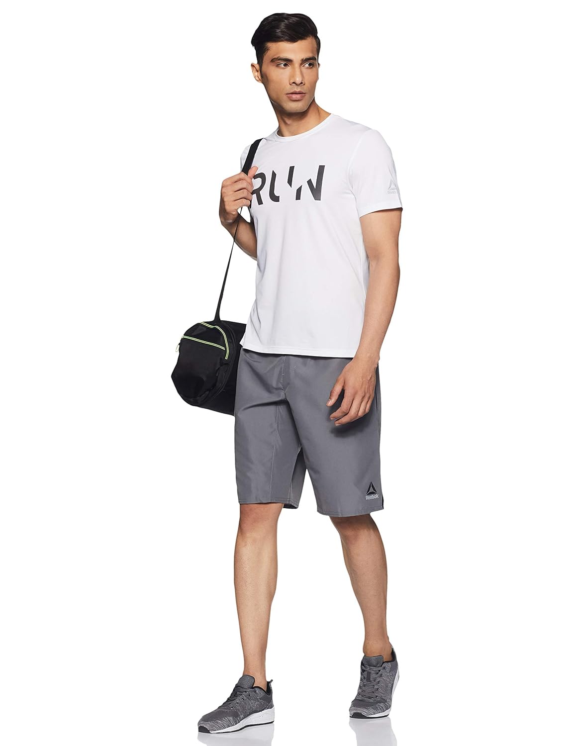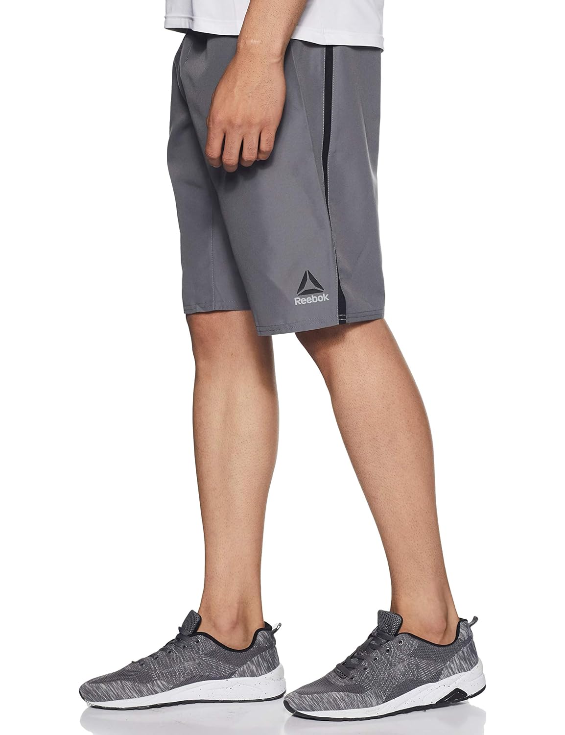 Look cool by wearing this pair of shorts from the popular brand, Reebok. It features a solid pattern with a branding on the left thigh that renders it trendy. It also has an elastic waistband with a drawstring fastening that ensures a proper fit. Above all, it is crafted from a premium quality fabric that makes it comfortable to wear. |