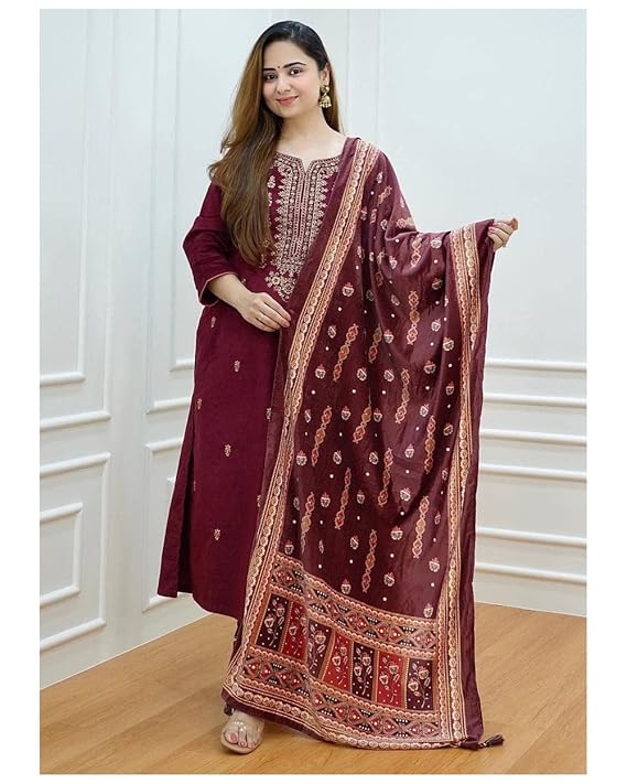 REXHOOD Women's Beautiful Rayon Embroidered Kurta with Pant Dupatta Set