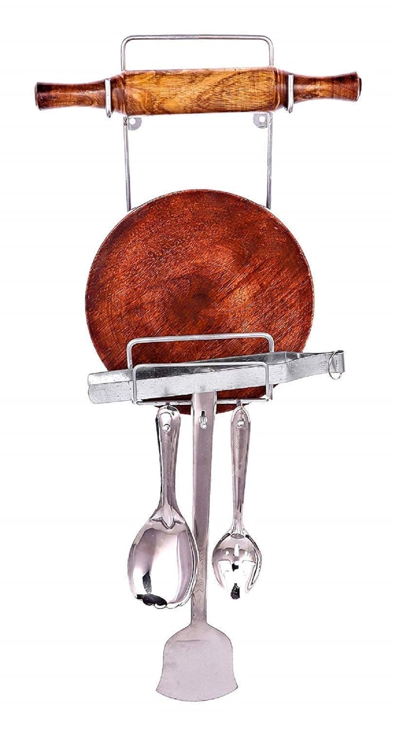 Rolling Pin Holder Chakla Belan Stand Stainless Steel Kitchen Rack (Silver) Rolling Pin (Silver, Pack of 1)