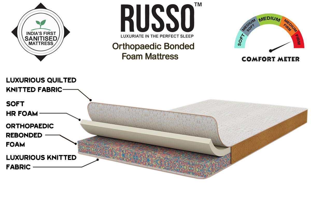 Layers - Rebonded Foam for orthopaedic support and High Resilience Soft Foam for cushioning.