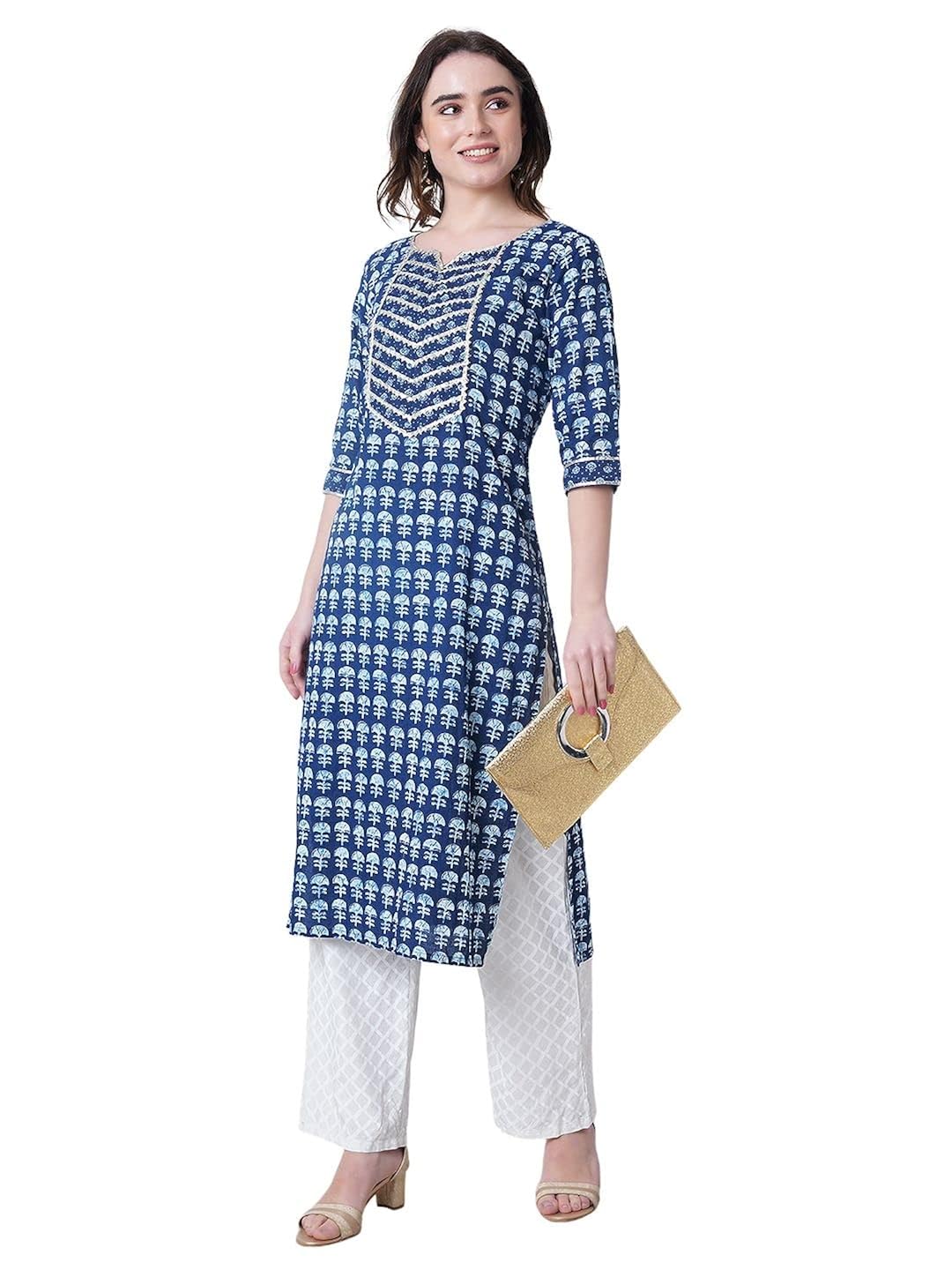 rytras Womens Cotton Printed Straight Kurti